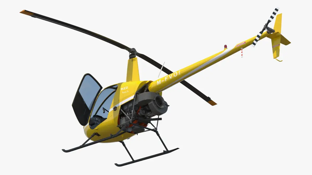 Robinson R22 Aircraft with Bubble Cockpit Yellow Rigged is a 3d model of a compact two-seat helicopter, perfect for pilot training and personal use.