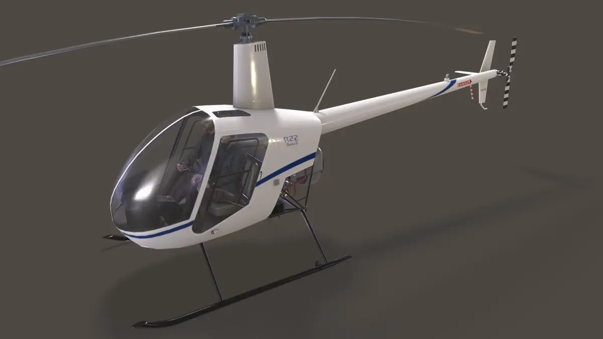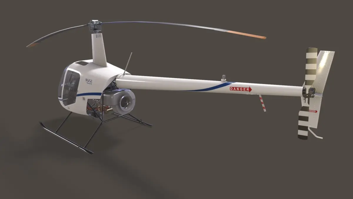 Realistic animated 3d model of Robinson R22 White Complex Animation