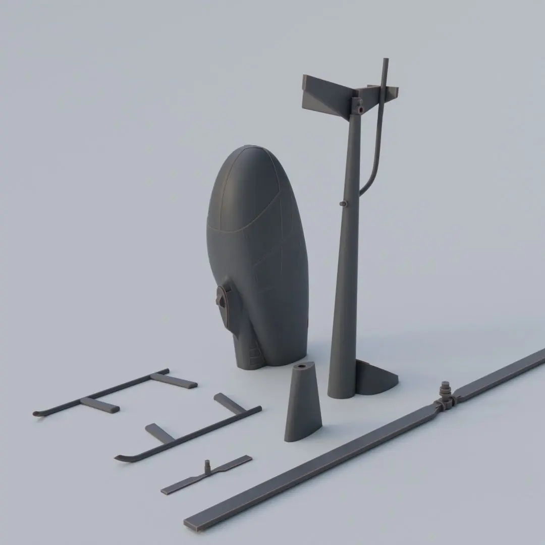 This is a model of the Robinson R66 helicopter. I have optimized the design to print it with your FDM printer. Also next to the entire model I have included splitparts of the model to make printing easier.