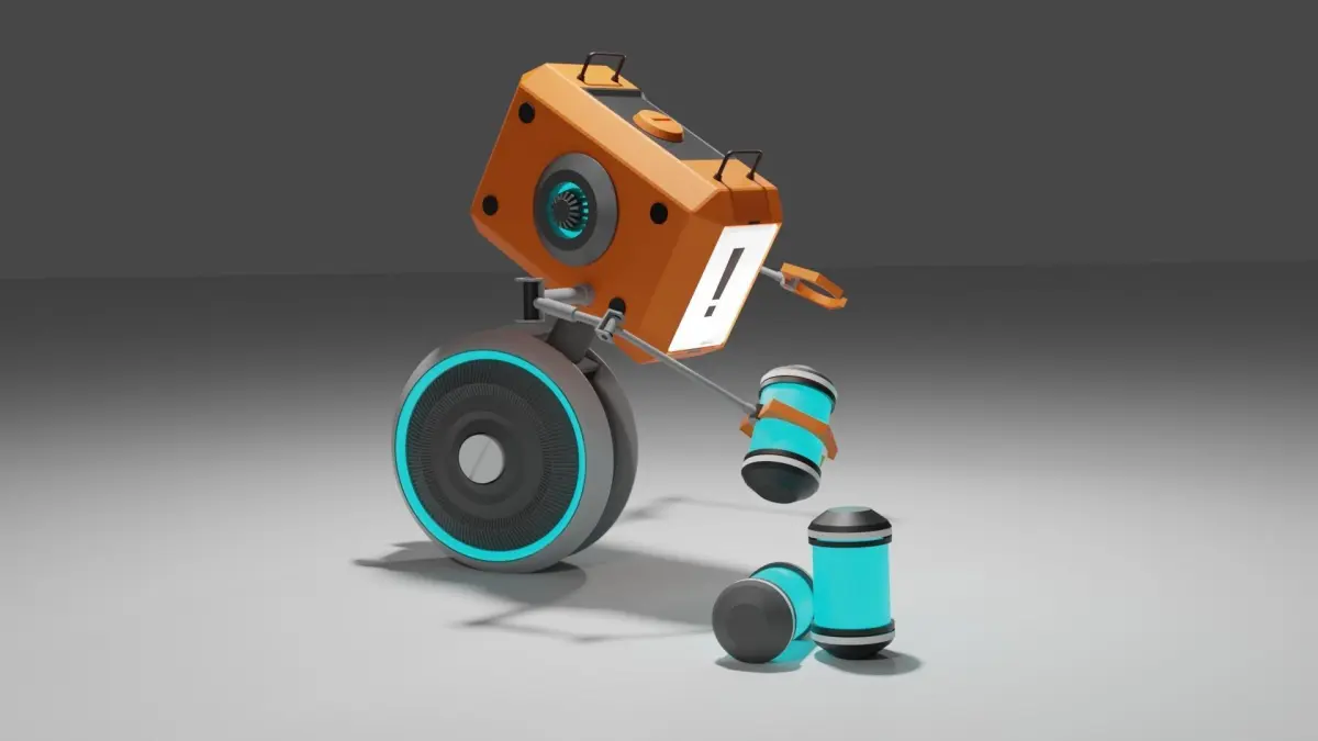 Robô em busca de energia.feito no blender.renderização em cicles.objetos nomeados e separados.não possui animação.modelo com fácil alteração, malhas organizadas.iluminação simples.Está pronto para fazer a animação.
