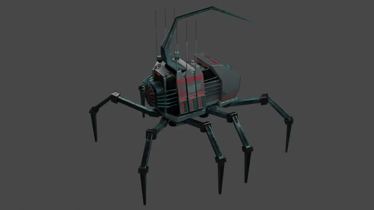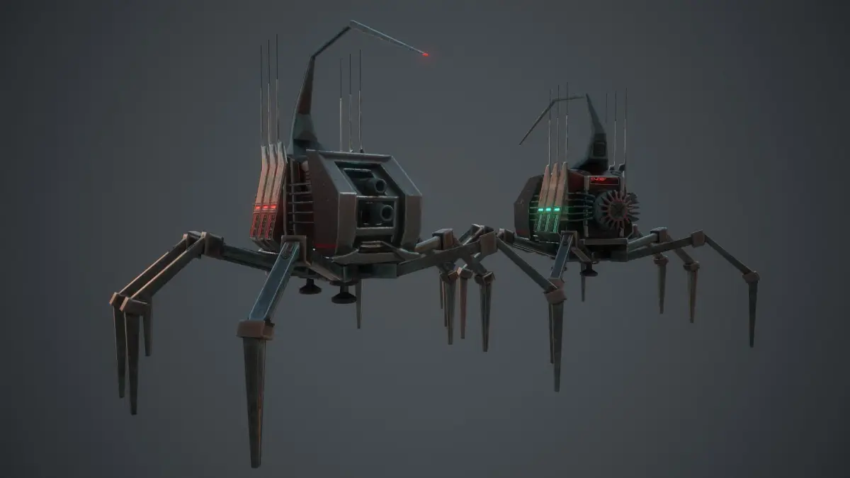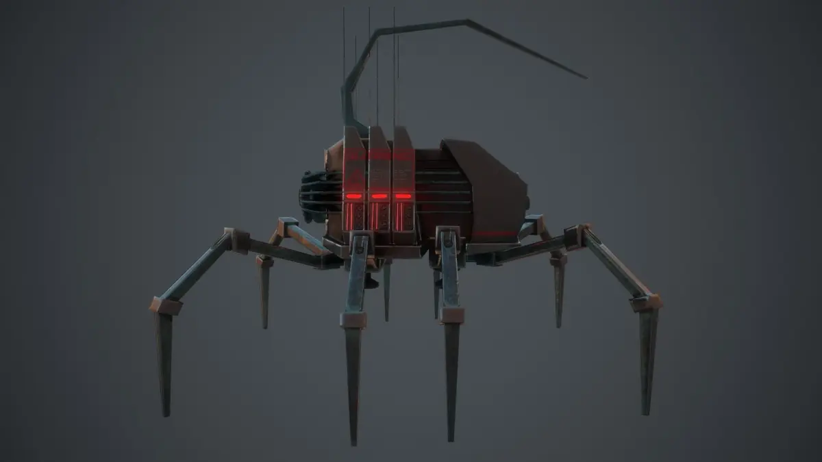 low-poly game ready 3d model.Rigging and animated robospider character.