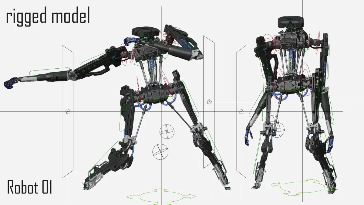 robot 01Rigged model, the model has an ik / fk rig - you can create any animations and set any poses There is animation in the file. You can use already prepared poses for work