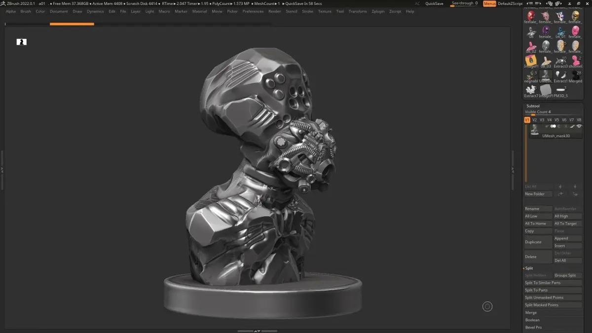 STL (Stereolithography, filesize: 28.4 MB), OBJ (OBJ, filesize: 25.5 MB), ZTL (Zbrush, filesize: 9.12 MB), FBX (Autodesk FBX, filesize: 16.5 MB)