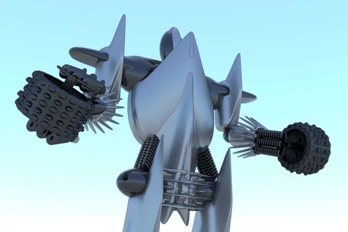 This is a robot made completely custom out of a head of an architect. Its inspiration is based on aerodinamics, lightning speed and sharp movements, so the design was inspirated by that notion.