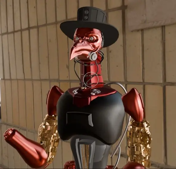 Este modelo 3D combina um visual retrô-futurista com uma estética inspirada na figura histórica dos médicos da peste. O design apresenta um robô com um corpo metálico, braços dourados e uma cabeça detalhada com um bico característico, reminiscentes das máscaras usadas durante a Peste Negra. O toque estiloso do chapéu preto e elementos tecnológicos modernos acrescentam personalidade ao personagem.