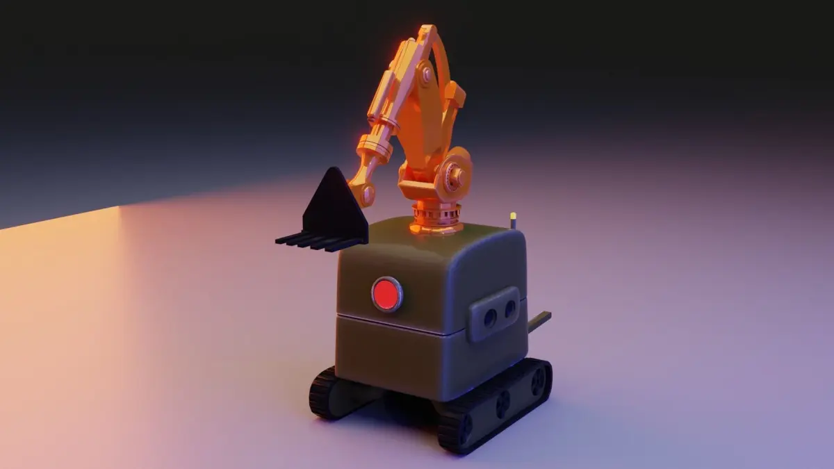 a small robot equipped with hand a forklift and some cool tracks fully texture PBR and there is a native blender file included where the robot is ready for animation!!!!!!!!!!all textures are at 2k (2048x2048)textures include:-normal map -emission map-roughness-specular-metalness