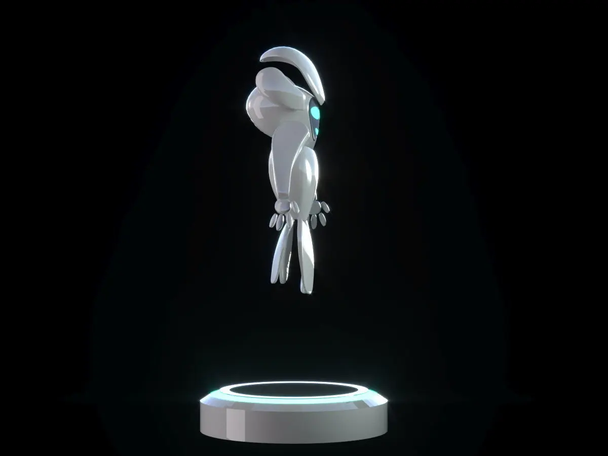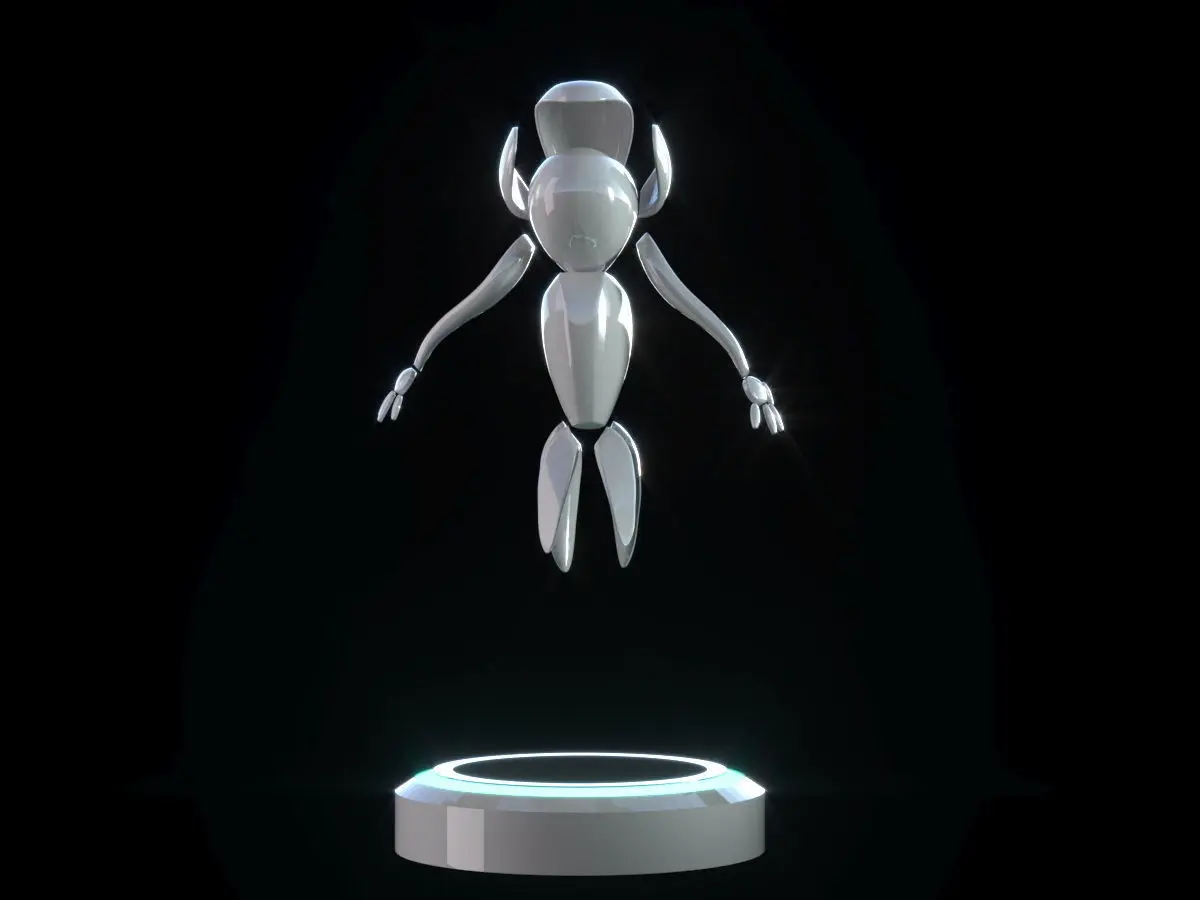 Cute robot flying on an air engine with neon illumination of the eyes and mouth. And there is also a podium. The robot has motion animation as well as built-in bones for animation in other programs. Thank you for your purchase)