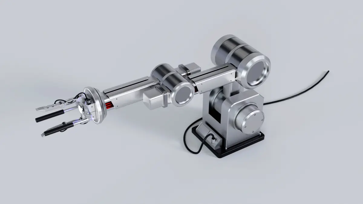 An industrial robot with a mechanical arm that can lift any object.