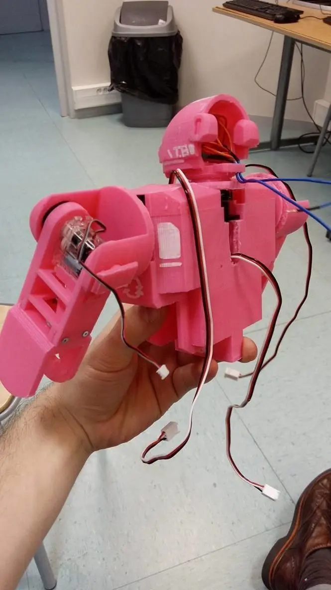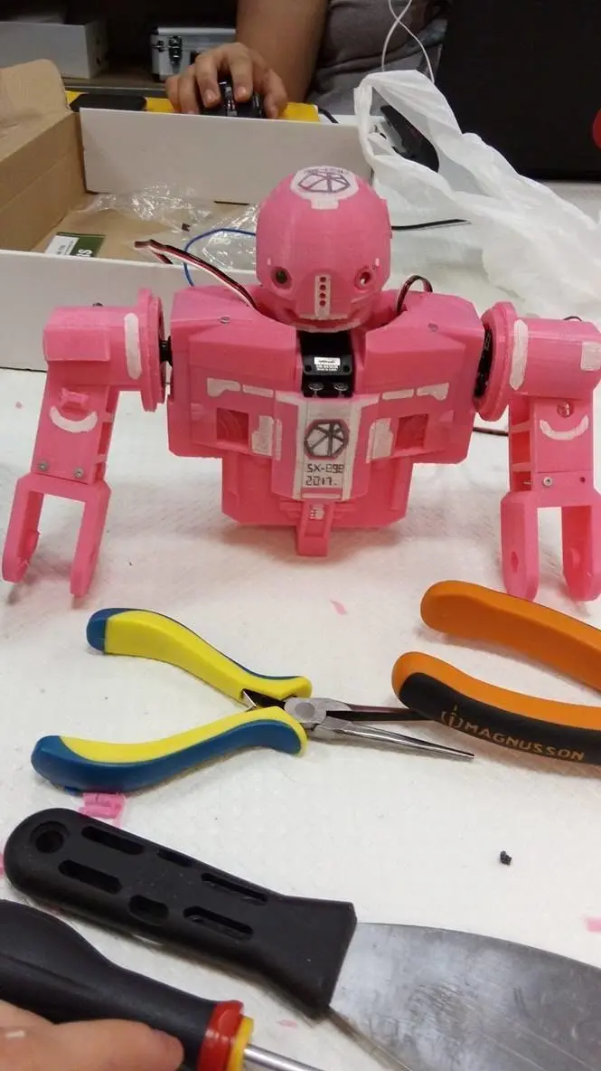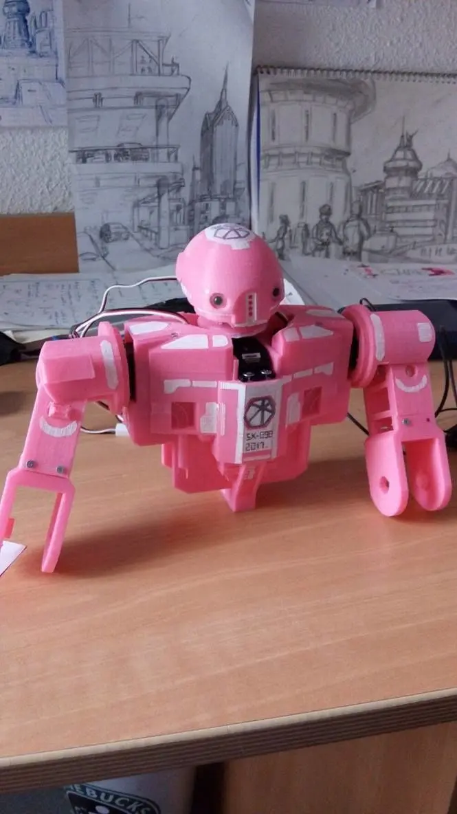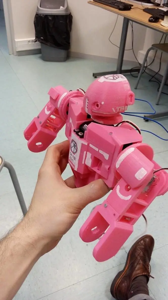 The first prototype of an humanoid little robot (about 25cm tall). You can place led in the head (and microphone), the spaces for the engines are of course already built (Servo S70JST and SM-S4303R). The parts have been designed to be printed easily, you can stare at the pictures to see the render :) .It is important to notice that the robot is not finished, the futures parts will come soon in an other free folder.