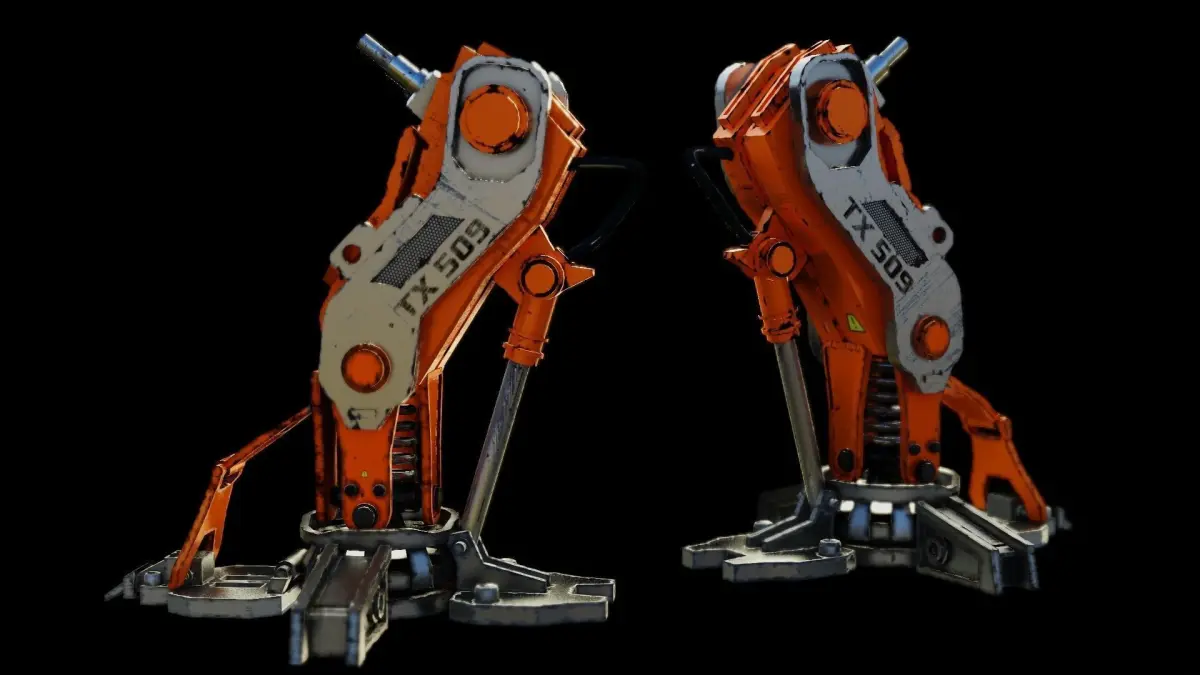 Files contain a complete model of mech leg parts.Suitable for games, VR, AR, realtime and realistic rendering.All the textures are included (2K, 24 textures under 6 sets)All the parts have a combined number of 8082 verts,13535 faces ,16074 trisDiffuse,Metallic,Roughness and normal maps included.All the parts are UV unwrapped and uses their own texture set.Can be easily imported into any game engine or other software.