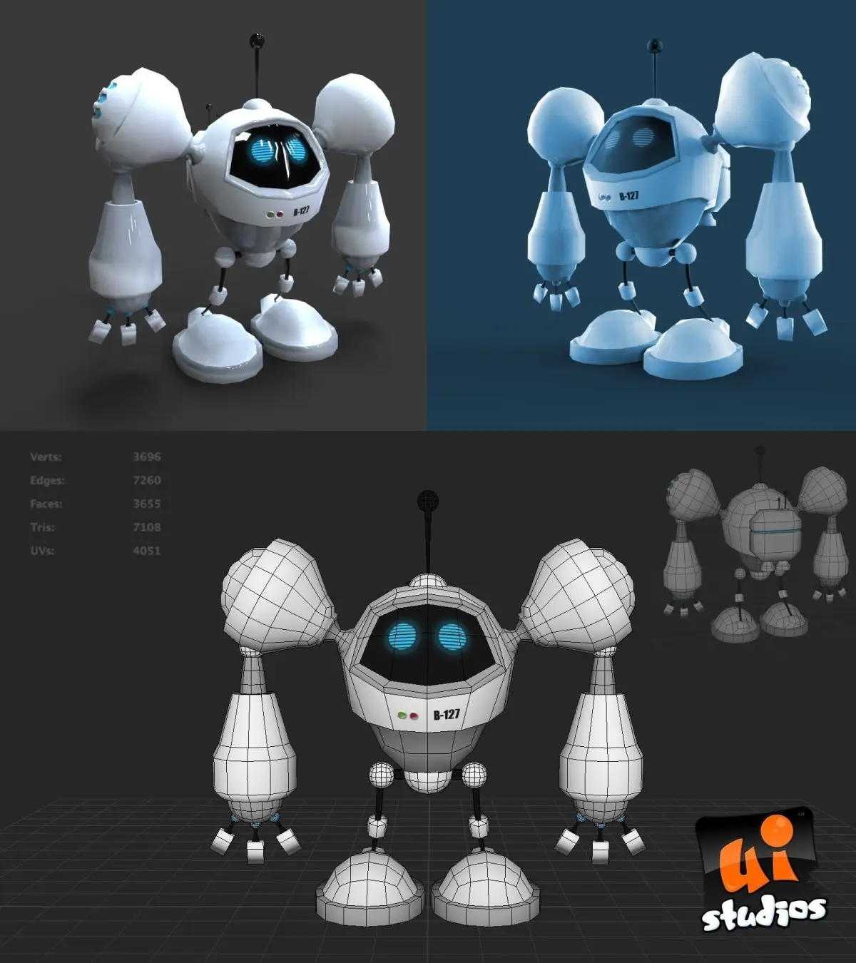 Awesome cartoon robot. Low Poly game asset. Comes with unity 3d import file.