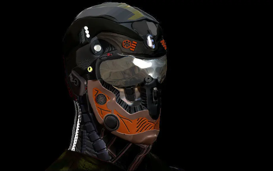 portrait of robot moto or cyborg with mask
