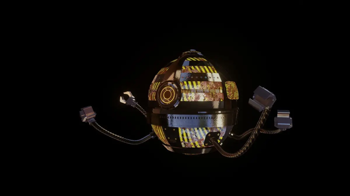 HomeCatalogRobot PBR Model futuristic egg with wires hanging from it 3D model