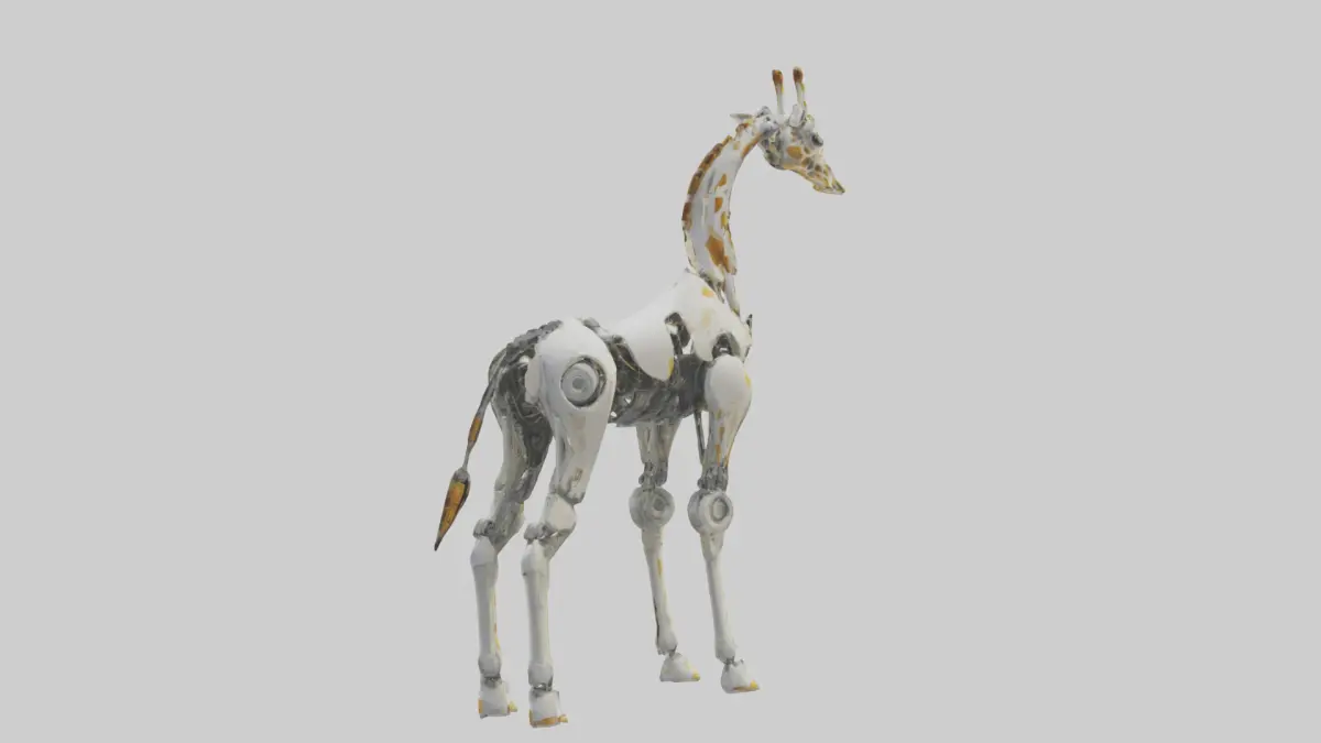 Beschreibung: 3D-Modell einer Roboter-Giraffe mit futuristischen und mechanischen Details, inspiriert von der Giraffenanatomie. Ideal für Animationsprojekte, Spielobjekte oder Science-Fiction-Themen-3D-Drucke. Modelle enthalten FBX-, OBJ-, GLB-, USDZ-, STL- und BLEND-Dateitypen.