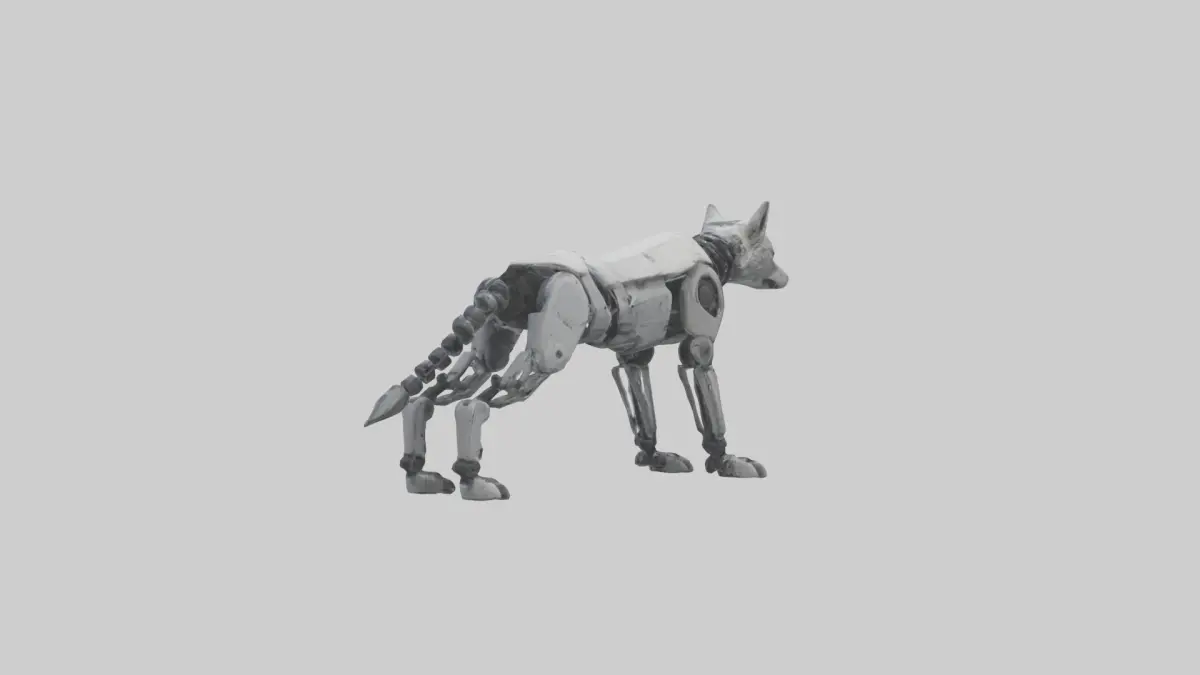 Keywords: robotic wolf, 3D model, sci-fi, mechanical wolf, futuristic design, game asset, animation, blender, FBX, OBJ, STL, GLB, USDZ.
