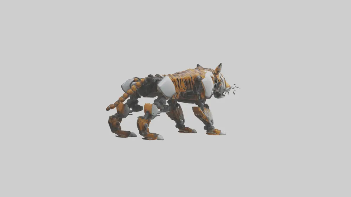 [Spanish description] Una versión robótica futurista de un tigre, combinando diseño mecánico con la ferocidad de un tigre. Perfecto para proyectos de ciencia ficción, juegos y animaciones. Formatos de archivo disponibles: FBX, OBJ, STL, GLB, USDZ, BLEND.