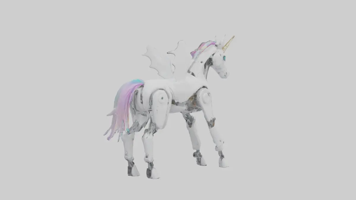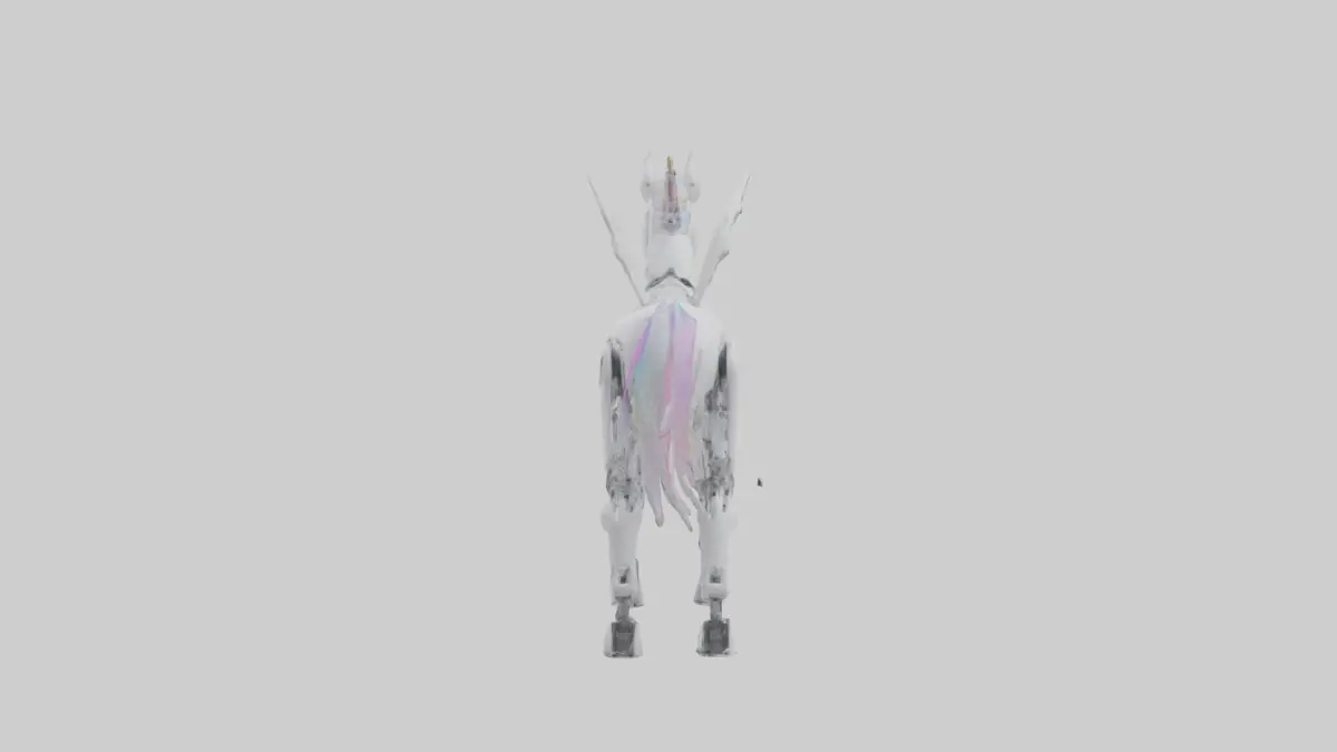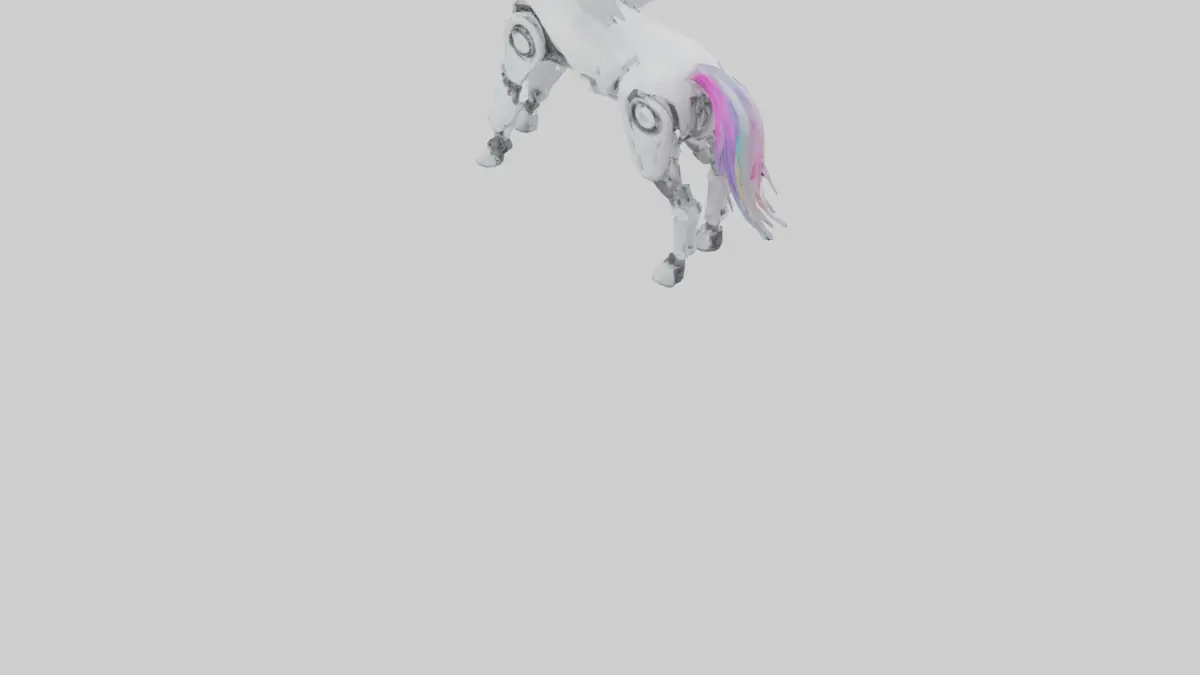 Keywords: robot unicorn, futuristic unicorn, 3D model, mythical robot, fantasy tech, mechanical unicorn