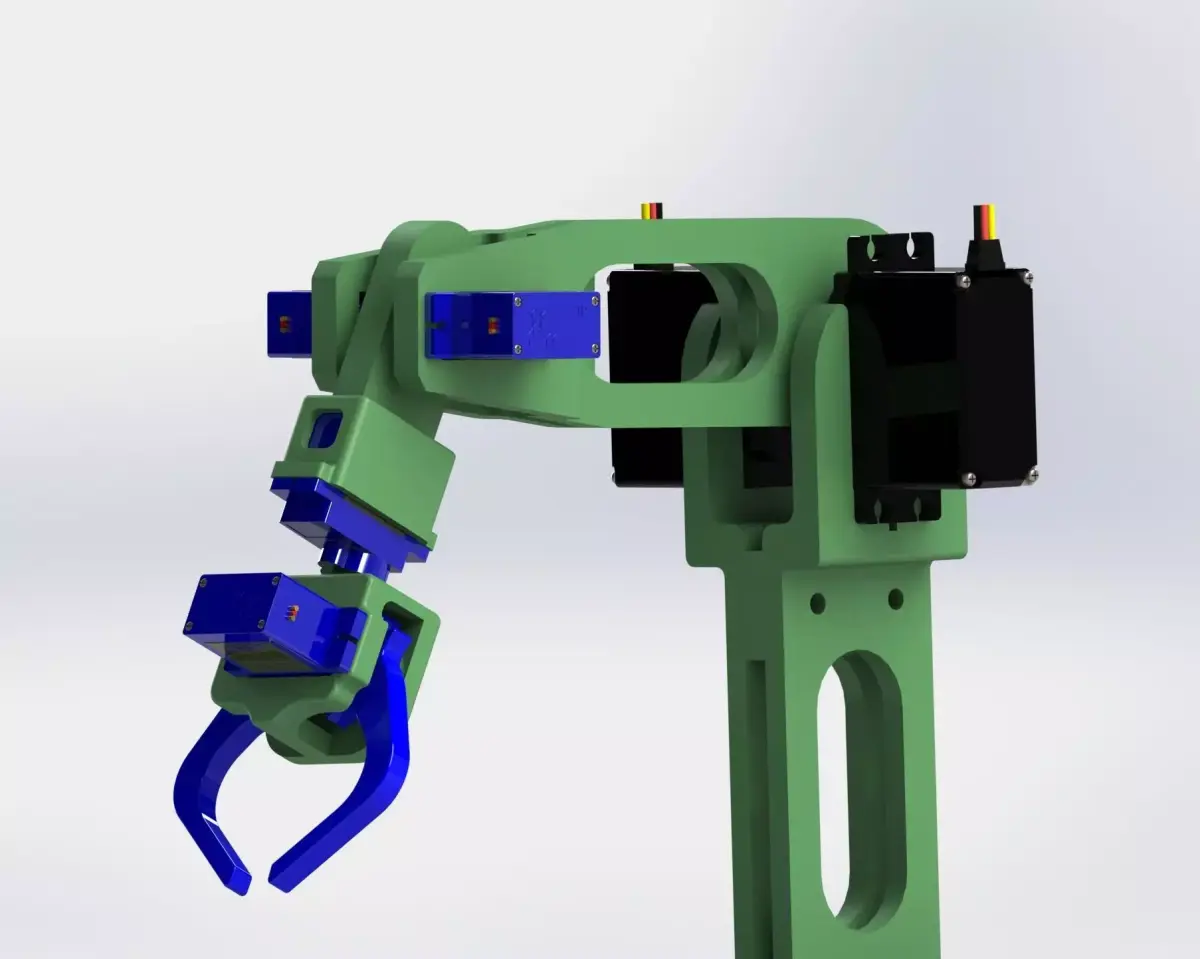 This is a highly detailed 3D model of a robotic arm with gripper , designed for engineering and 3D printing applications.