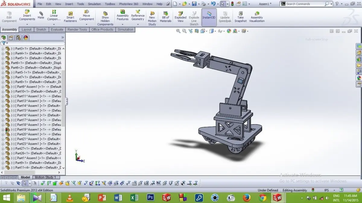 This is a concept design of a Robotic Arm. A robotic arm is a type of mechanical arm, usually programmable, with similar functions to a human arm; the arm may be the sum total of the mechanism or may be part of a more complex robot.