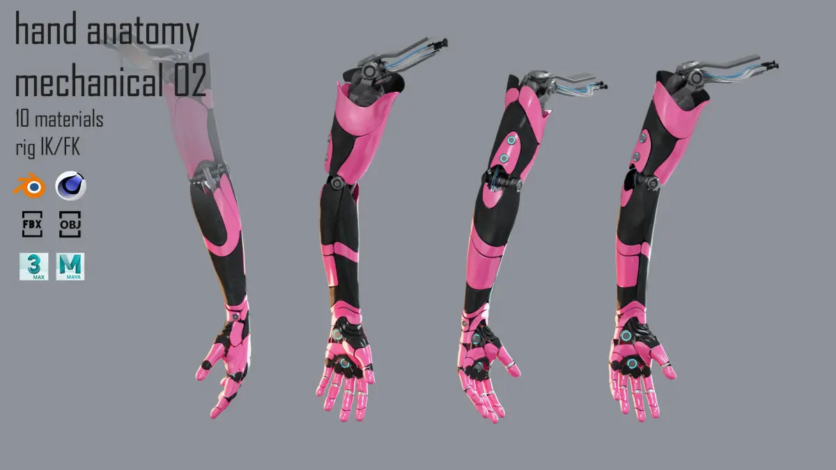 Robotic hand anatomy 02! the model has 10 materials for blender 2.8 that are very easy to modify and customize