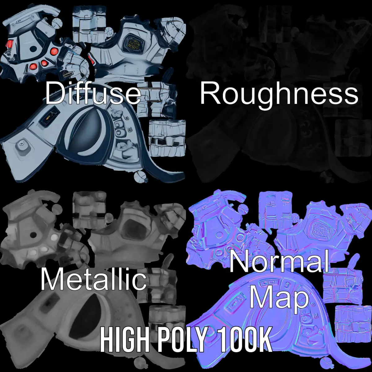 The model's textures are PBR, Diffuse, NormalMap, and reflection/roughness/metallic, which are suitable for any modern rendering engine. All models are accurately unwrapped and have no overlapping UV. This robotic hand is perfect for creating dynamic sci-fi scenes, enhancing video game assets, or developing interactive VR and AR experiences. All textures are 4096*4096 in size.