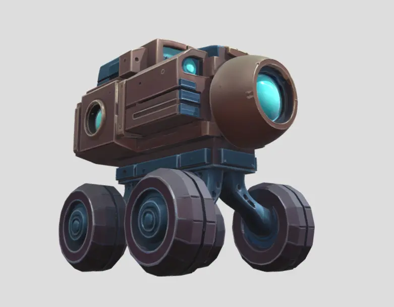 A futuristic robotic vehicle equipped with a mounted camera, designed for surveillance, exploration, and sci-fi environments. This model is optimized for real-time applications and includes high-quality PBR textures, making it ideal for games, animations, simulations, and AR/VR experiences.