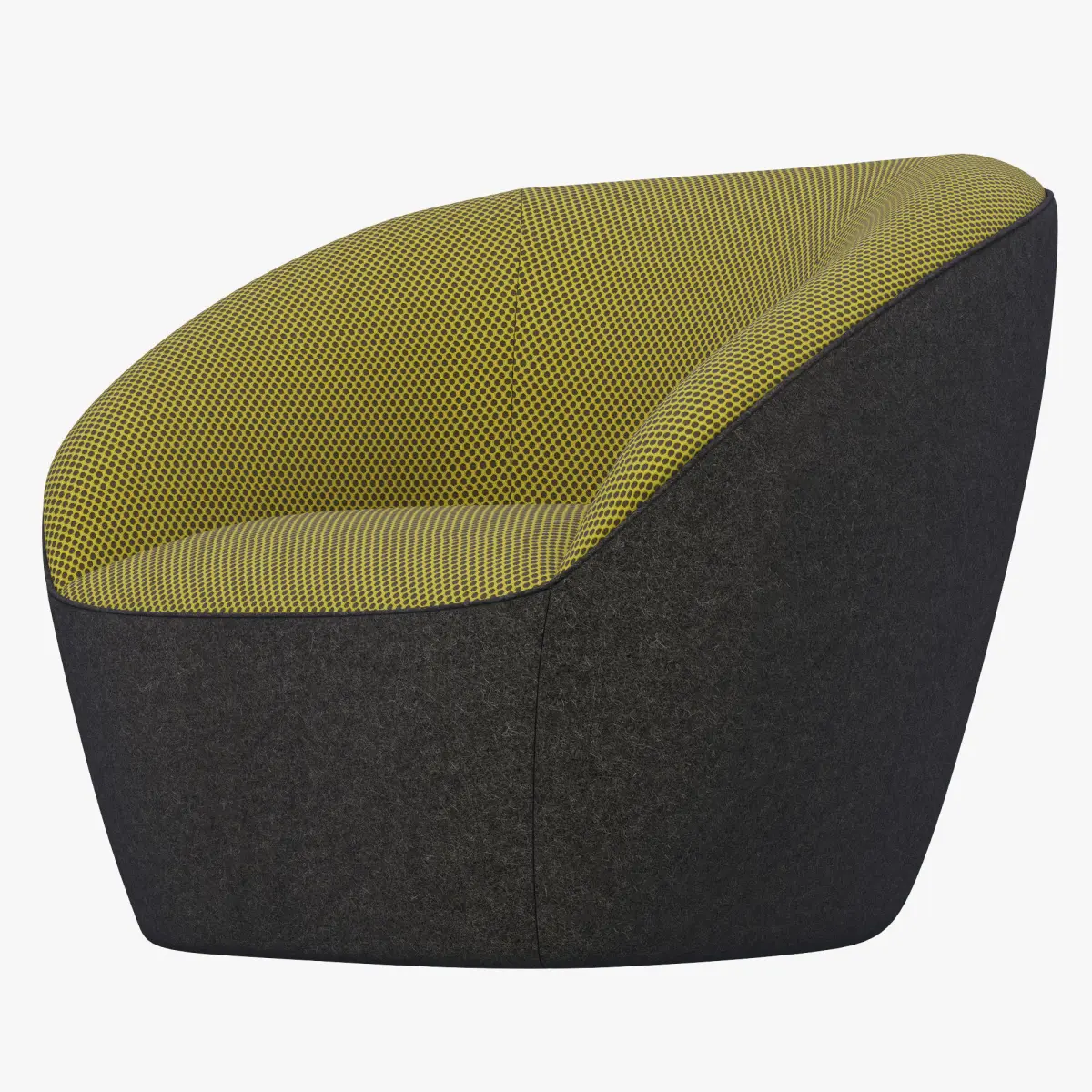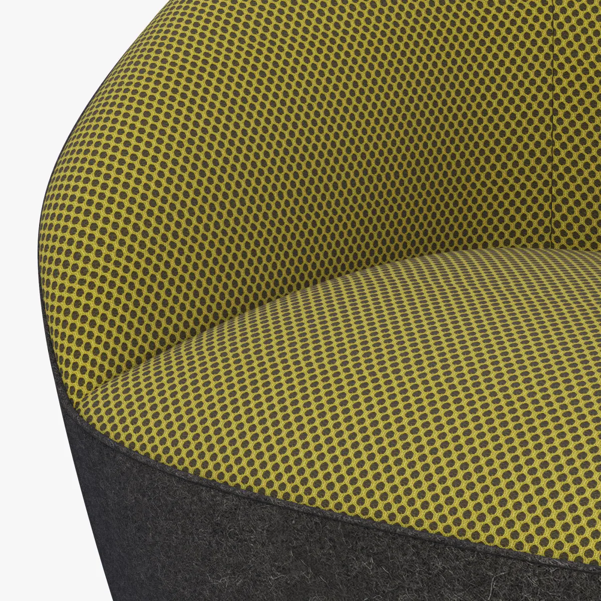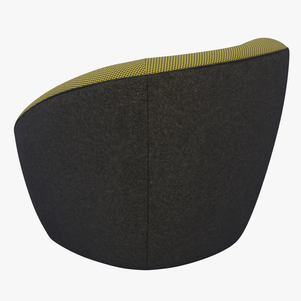 Upholstered in Techno 2D, 3D or 4D fabric or in leather. Seat cushion in HR polyurethane foam 40 kg/m3 and fibres. Back cushion in HR polyurethane foam 45 kg/m3 and fibres. HR elastic straps suspension. Structure in solid fir wood and plywood.Swivel base in chrome-plated metal. Automatic return function with position memory system.