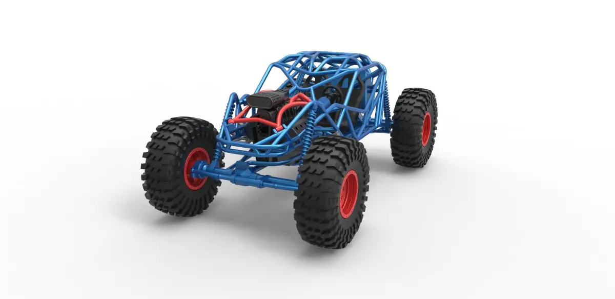 The model consists of parts: Air intake, Body, Bottom plate, Engine guard, Engine, Gear shifter, Left exhaust system, Right exhaust system, Rims, Seats, Steering wheel, Tires.
