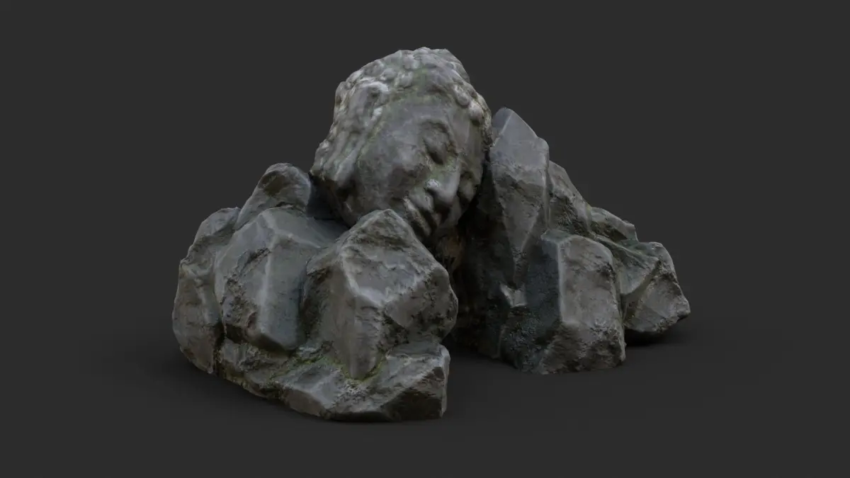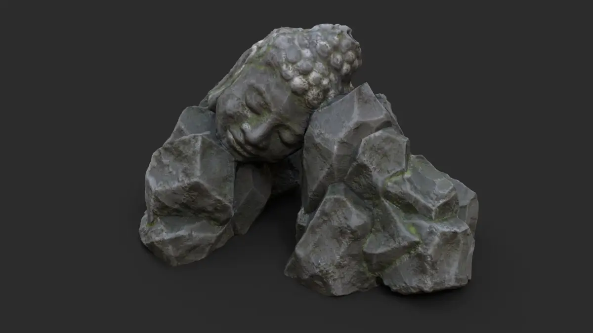 This buddha rock is a game ready prop including 4 LODs and collider.