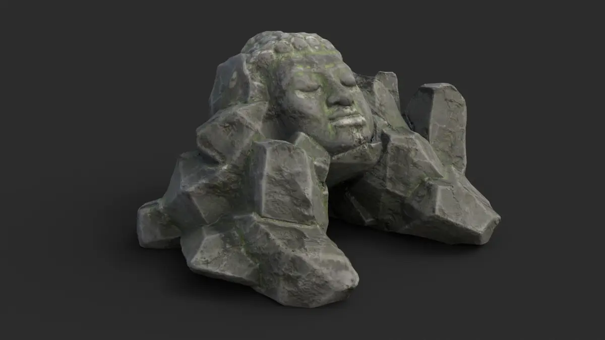 This buddha rock is a game ready prop including 4 LODs and collider.