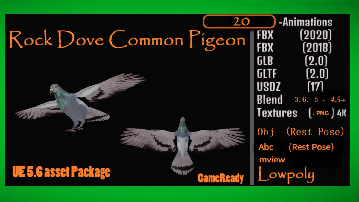 The rock dove, also known as the rock pigeon or common pigeon, is a member of the bird family Columbidae. In common usage, it is often simply referred to as the pigeon, although the rock dove is the wild form of the bird; the pigeons familiar to most people are the domesticated forms of the wild rock dove. ..3D Rock Dove Pigeon Model By Nyilonelycompany (nyc).
