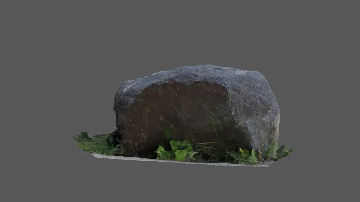 This is a photoscanned image of a decorative rock surrounded by grasses and a sidewalk on one side. This is a first time successful photoscan for me so it may not be perfect (or it may be...?). The texture on the rock is a mix of colors and the colors are adjustable individually in Blender.