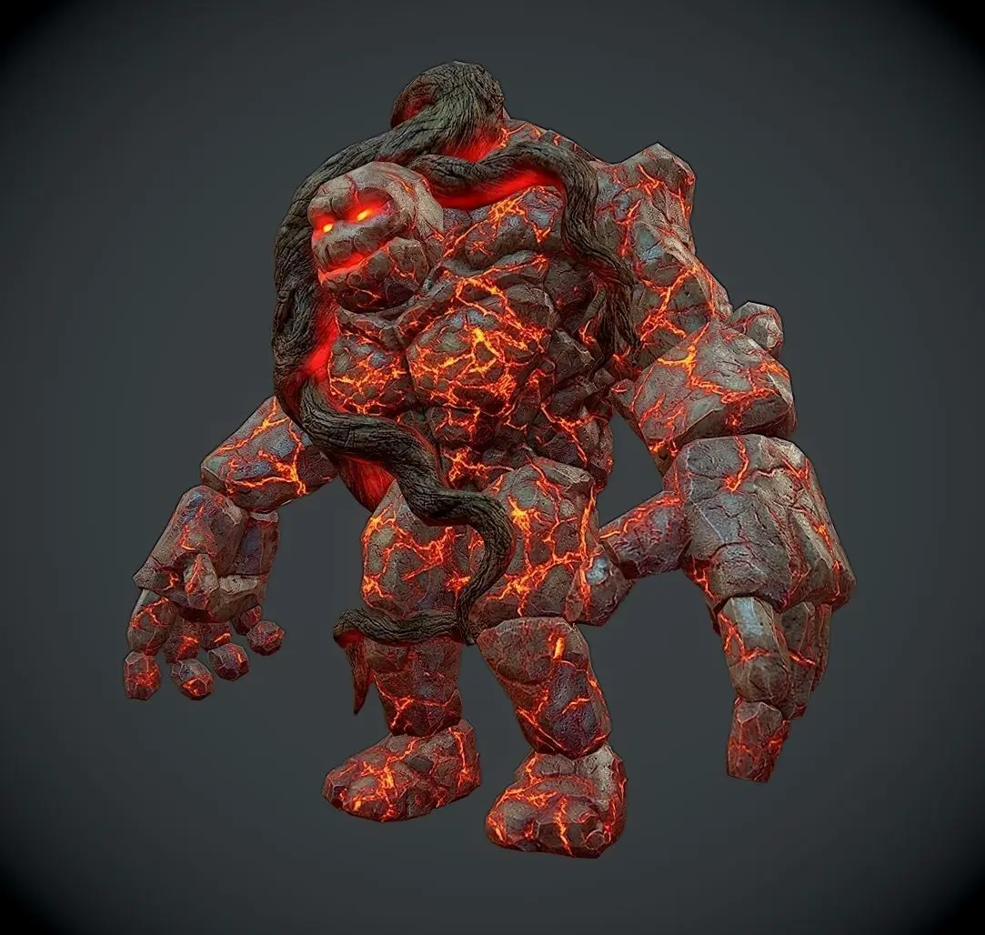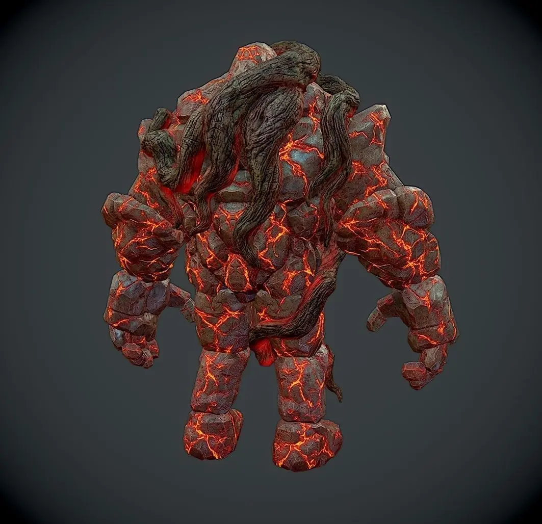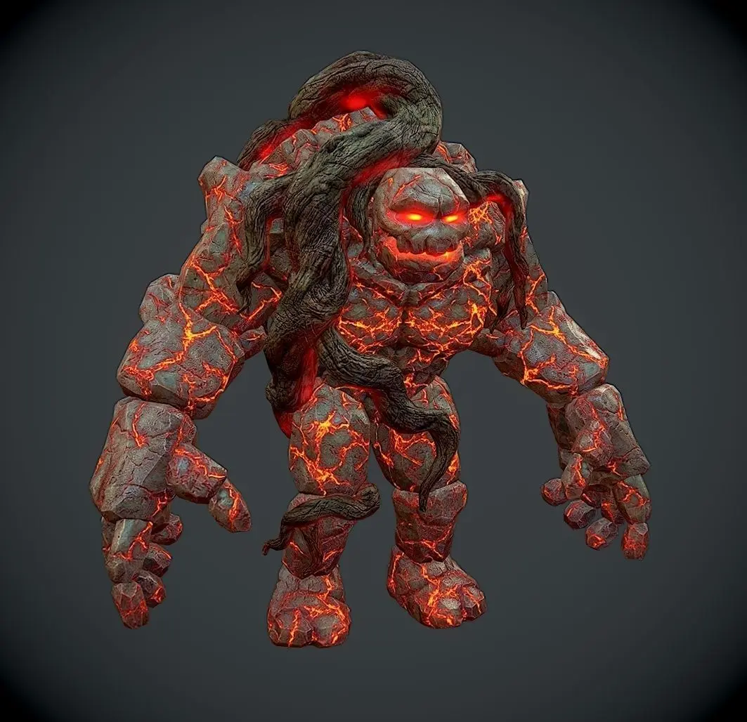 Rock Monster Boss Magma Stone Giant Warrior Tree Trunk Lowpoly 3D model Magic Lava Treant
