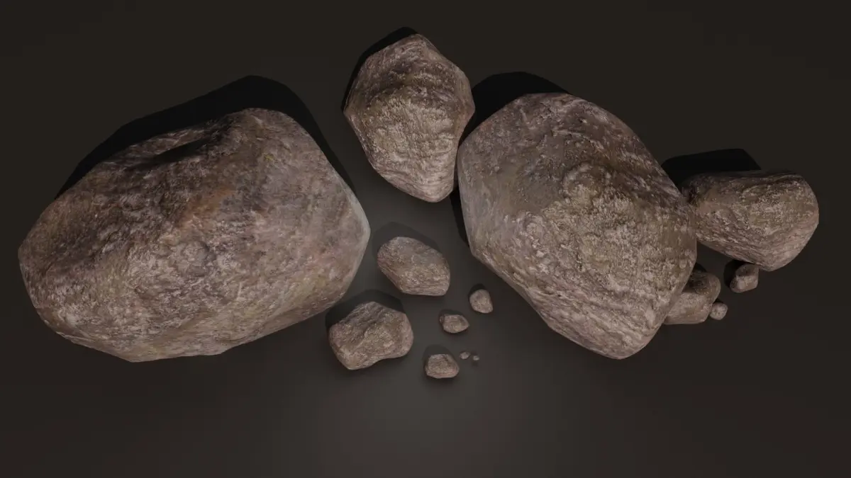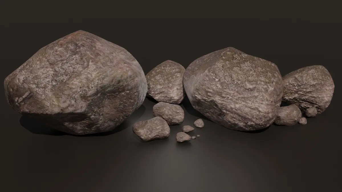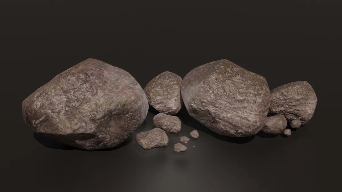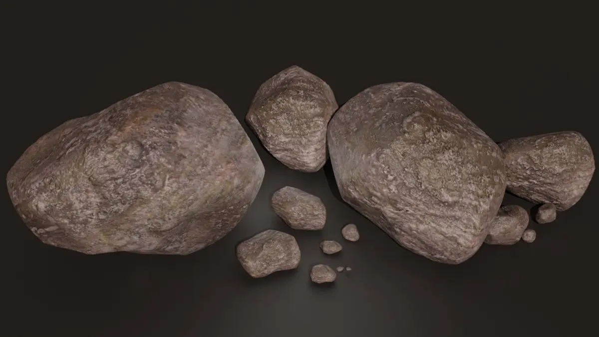The package contains 15 real-time photoscan-based models of various mountain rocks.