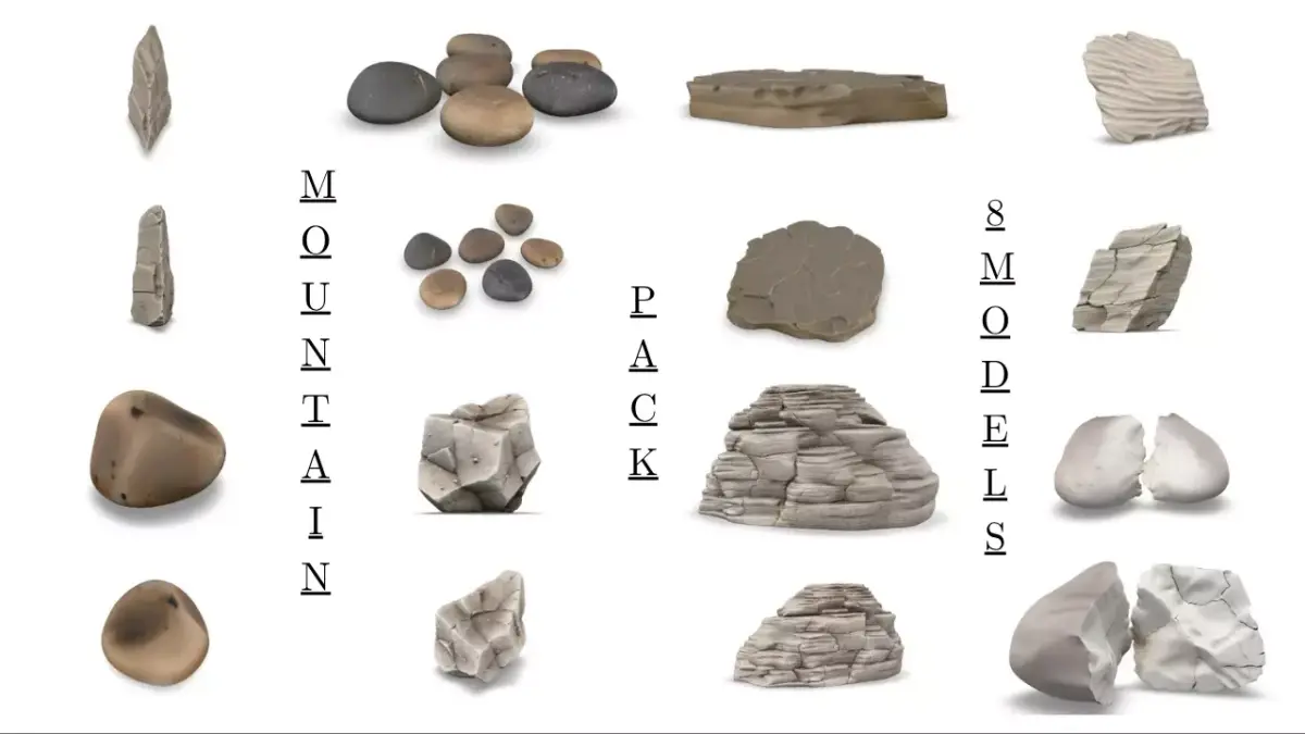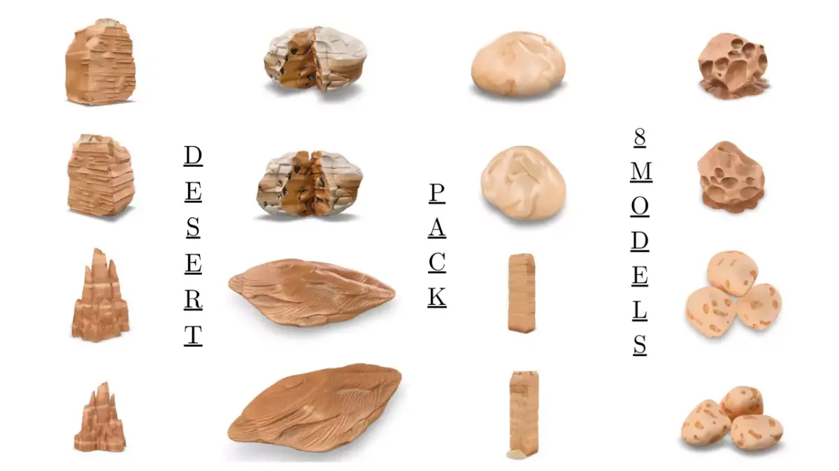 This pack includes all 6 of your environment rock collections, making it the perfect “all-in-one” kit for game developers, cinematic artists, and 3D environment creators.