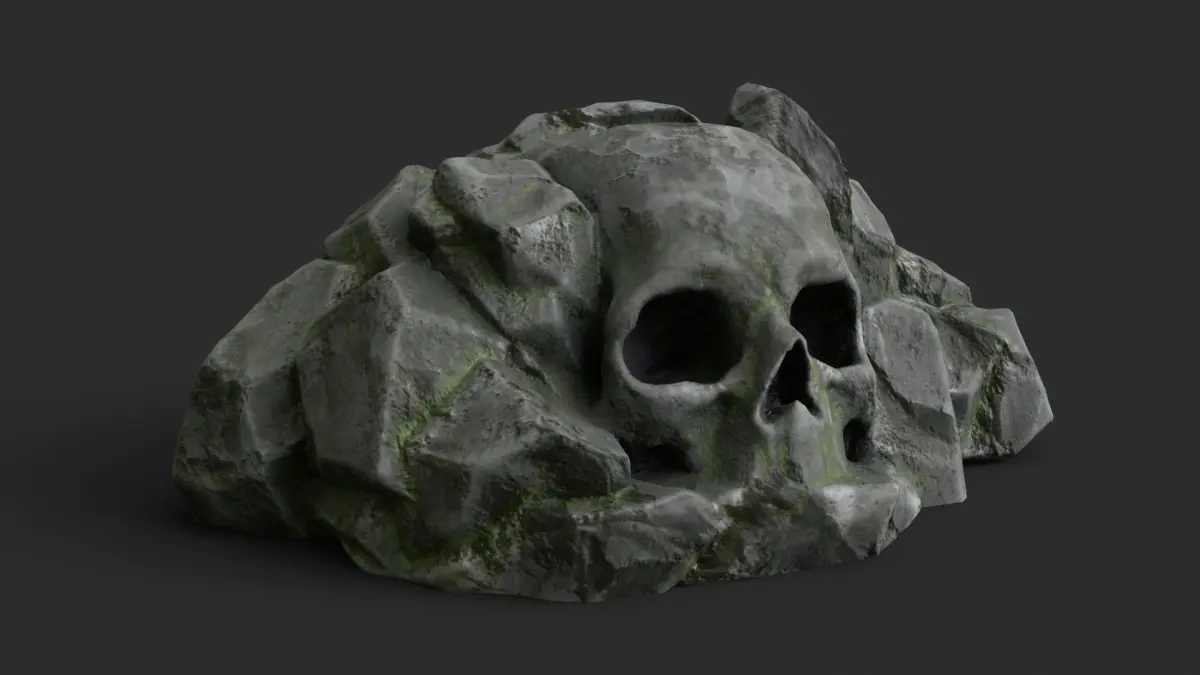 This skull rock is a game ready prop including 4 LODs and collider.