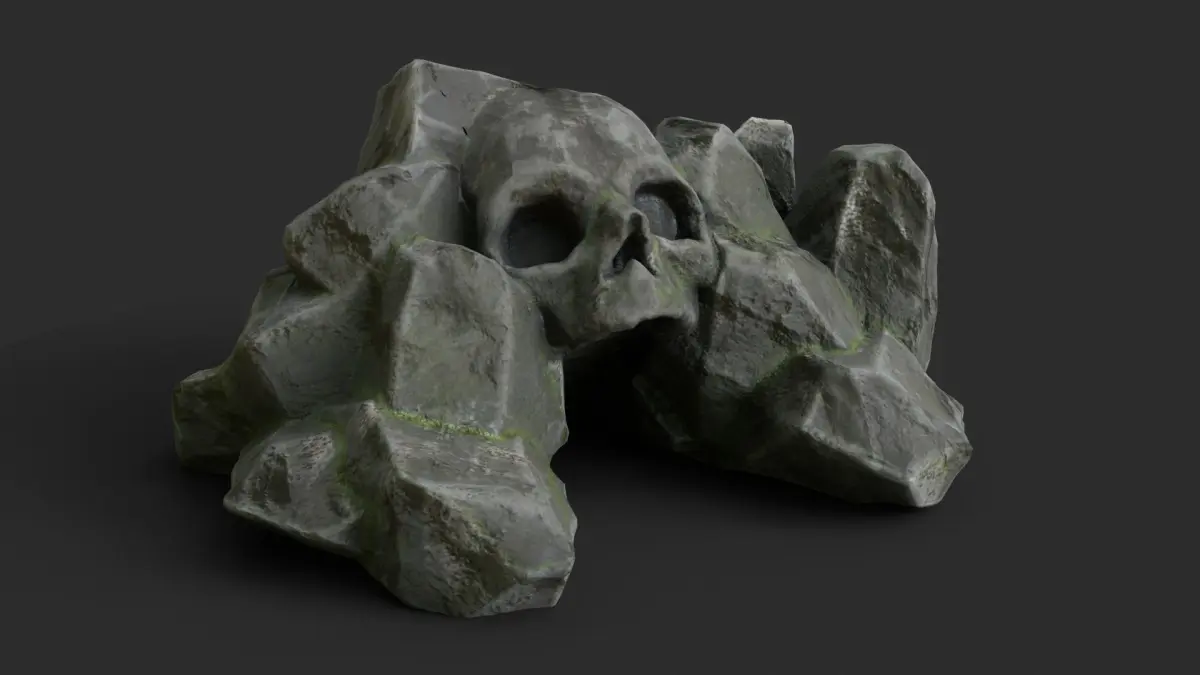 This skull rock is a game ready prop including 4 LODs and collider.