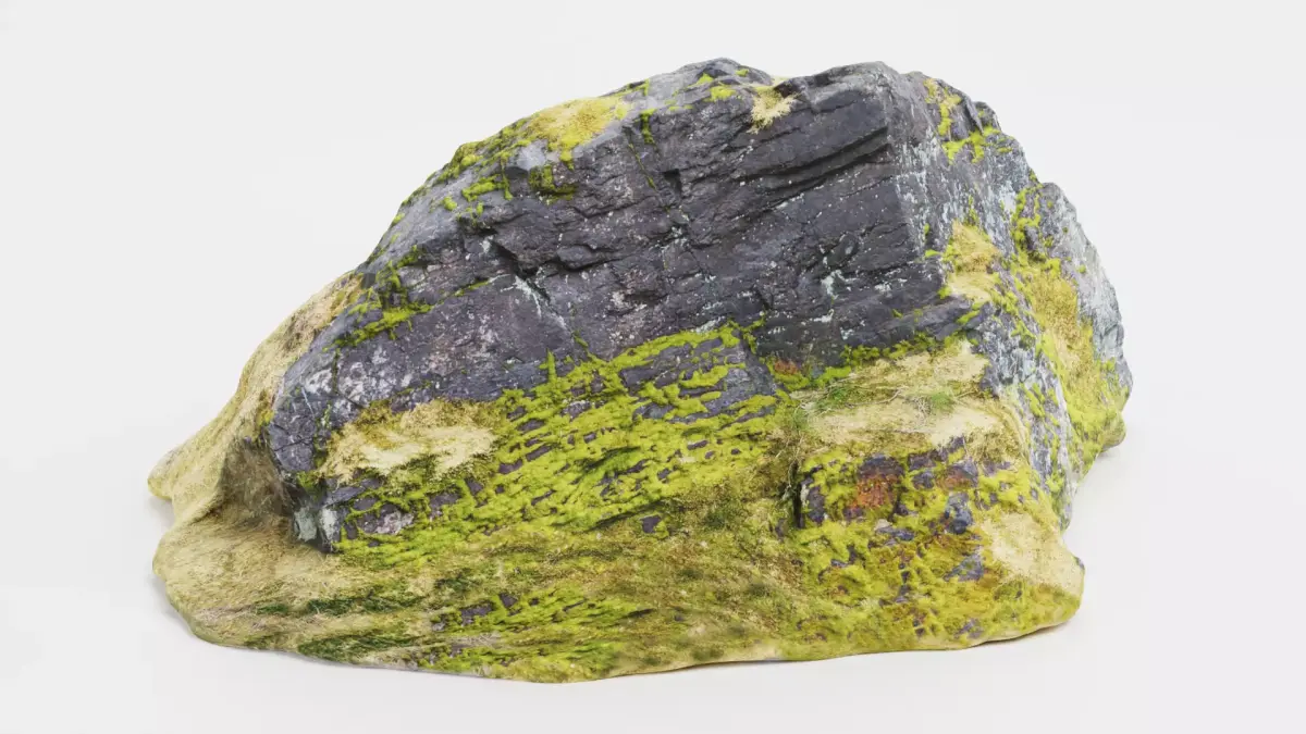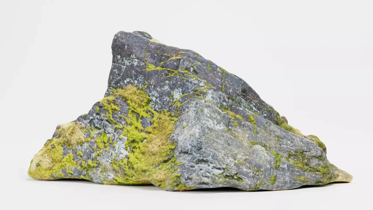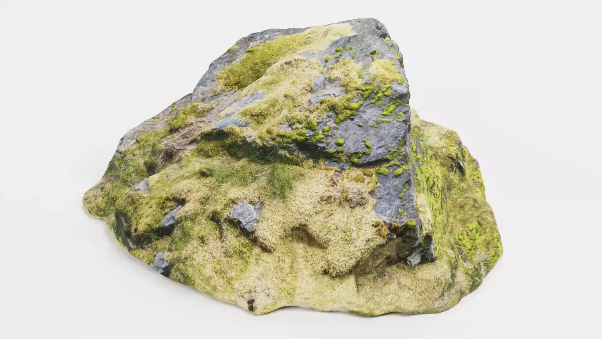 - Large rock model with detailed moss coverage