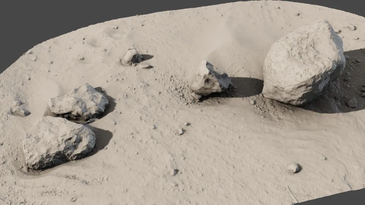 Hi-res photoscan of a set of 3 boulders halfsunken into sand. Model comes with 16387x16384 diffuse and AO map.