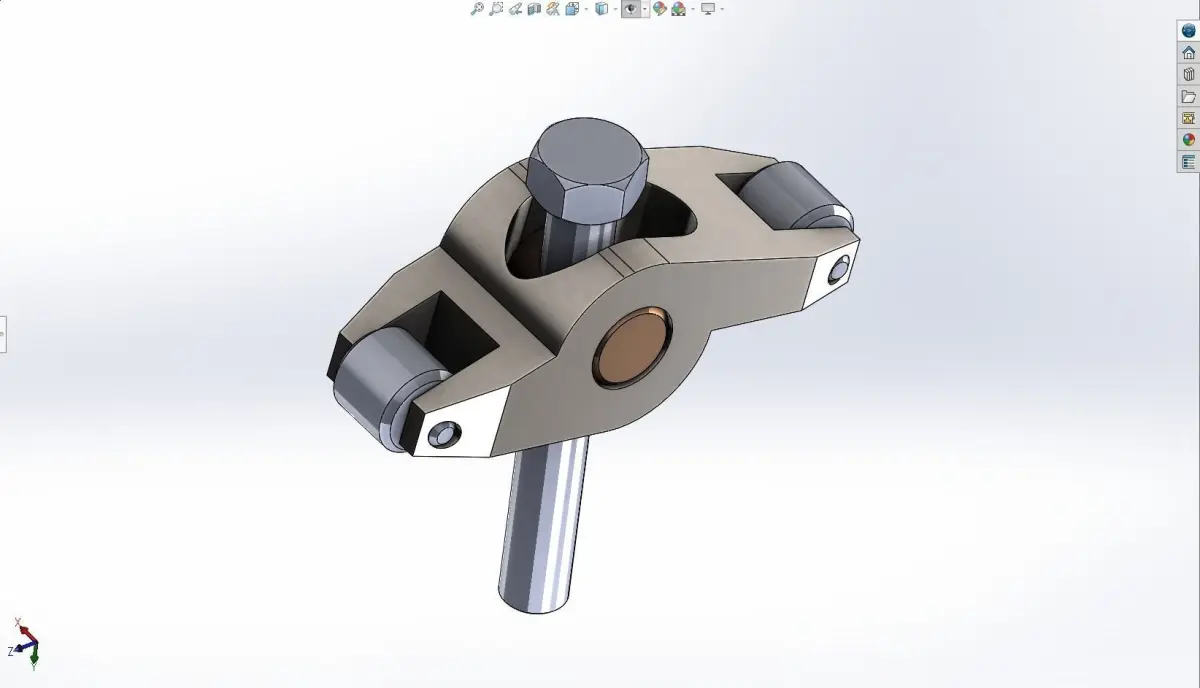 Rocket arm assembly with respective constraints inside solidworks software for animation and simulation. Part of the piston are seperatly added as a archive file.