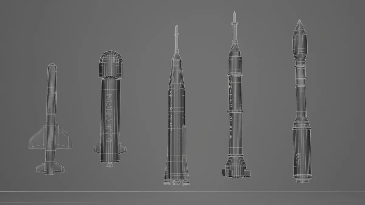 The 3D Rocket Collection is a stunning and versatile set of 3D models that features a range of rockets and spacecraft designed for use in a variety of applications, including video games, animations, and visual effects. This collection includes a variety of rocket models, each with its own unique design and level of detail, ranging from small and simple rockets to large and complex spacecraft.Each model in the 3D Rocket Collection is created with a high level of accuracy and attention to detail, with every aspect of the design carefully crafted to ensure realism and authenticity. The collection features a range of surface textures, including metallic and glossy finishes, as well as a variety of accessories and details, such as thrusters, landing gear, and control panels.