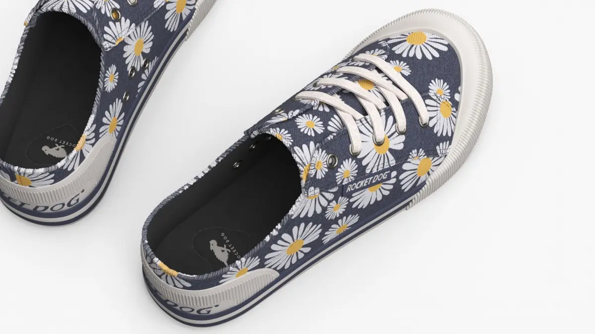 Rocket Dog Canvas Sneakers with Daisy Pattern Navy is a three-dimensional model of casual fashion footwear model known for its youthful and urban streetwear style.