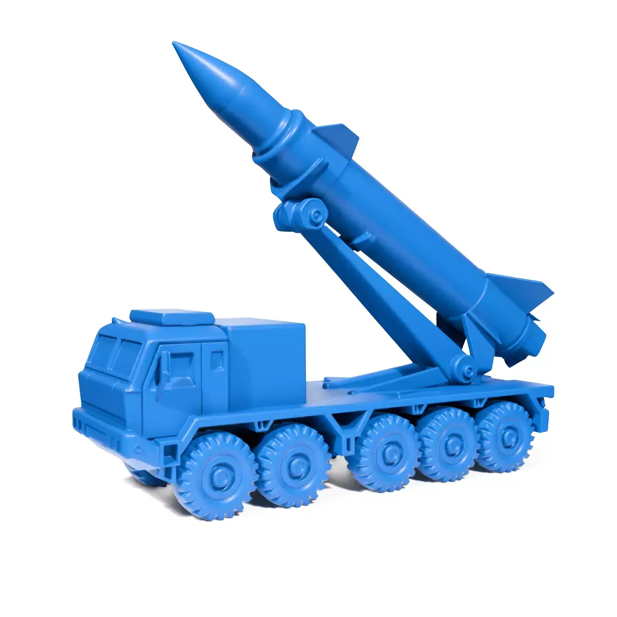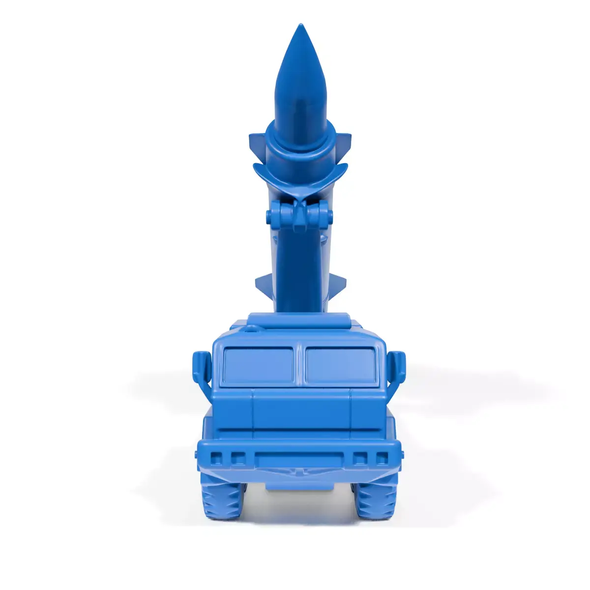 The rocket launcher model captures the essence of a military vehicle with a simplified yet accurate structure, highlighting its imposing design.