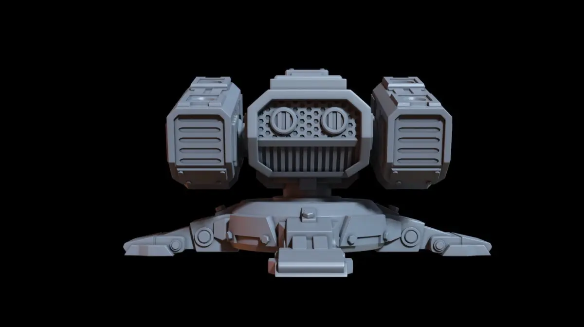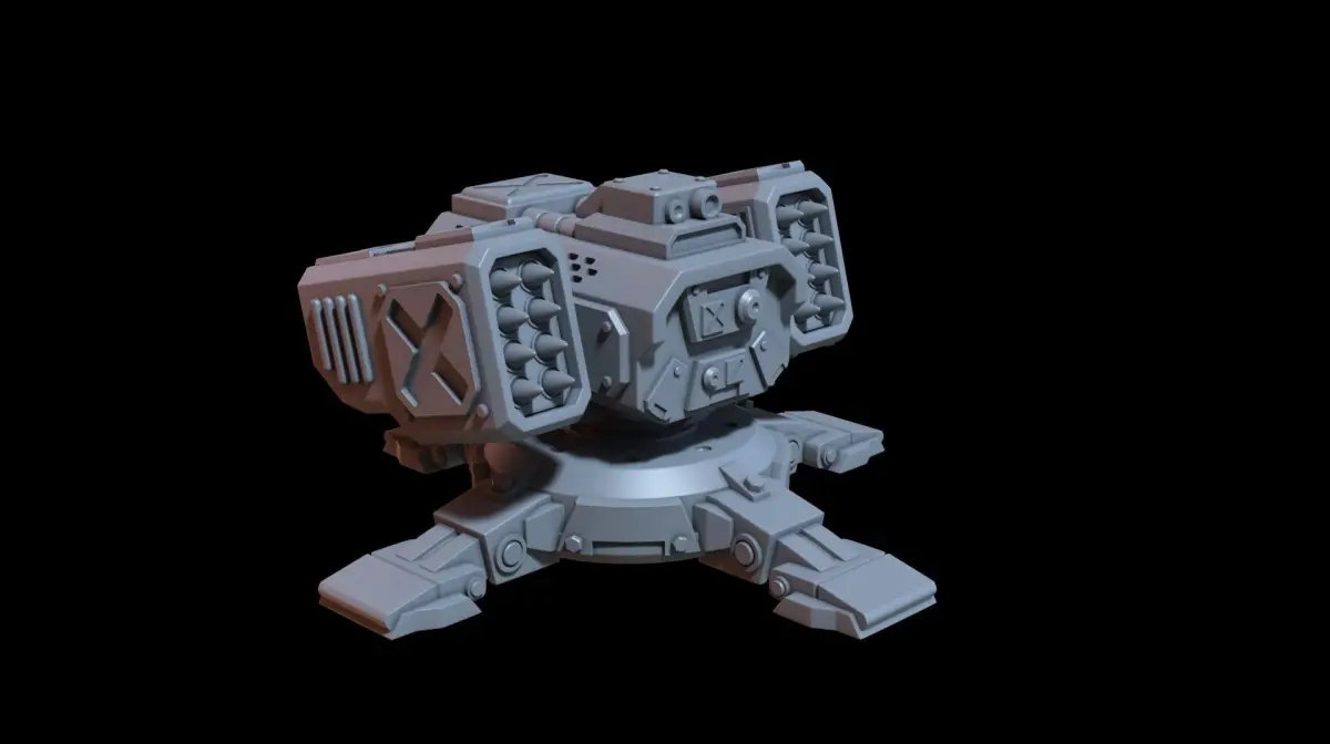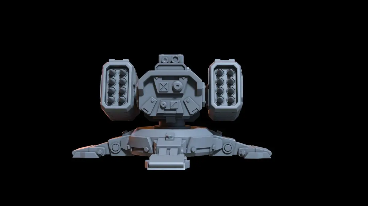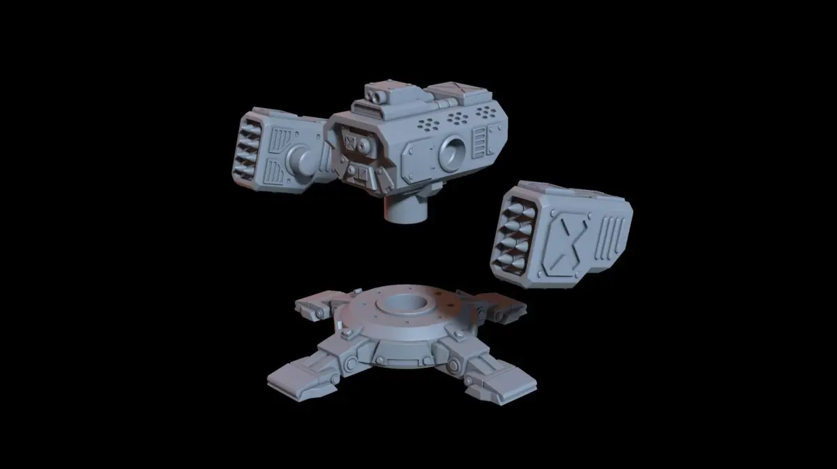 -Modular rocket sentry for your sci-fi tabletop needs. Features different rocket pods that are interchangeable for different load out.