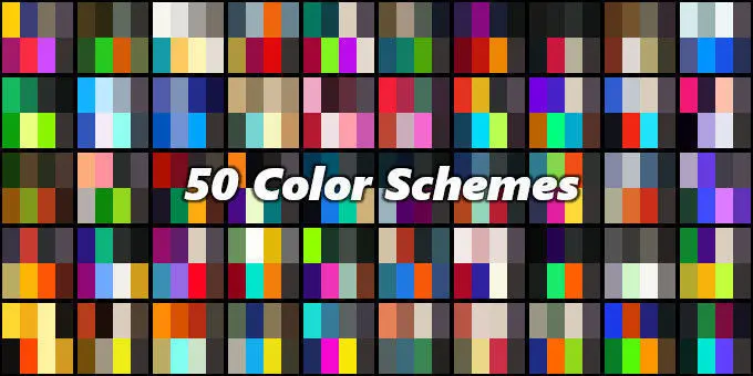 50x color schemes, simple textures, easy to edit or add your own as needed.
