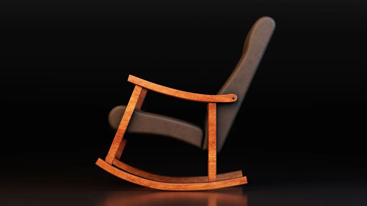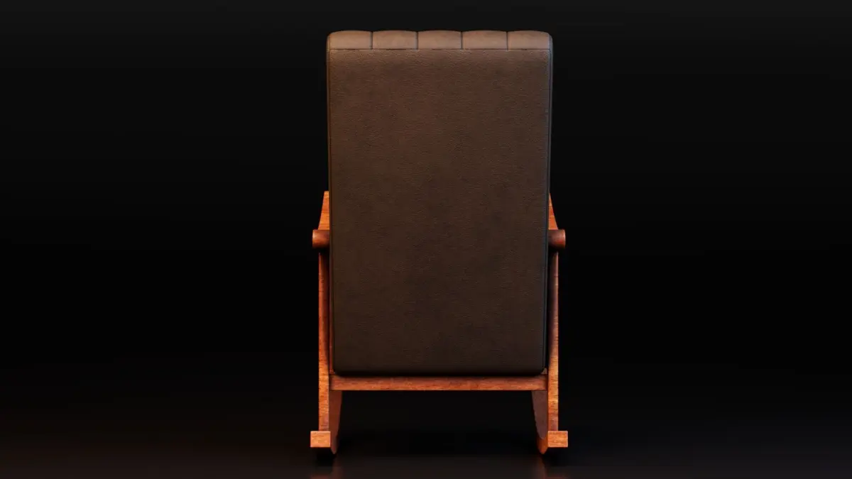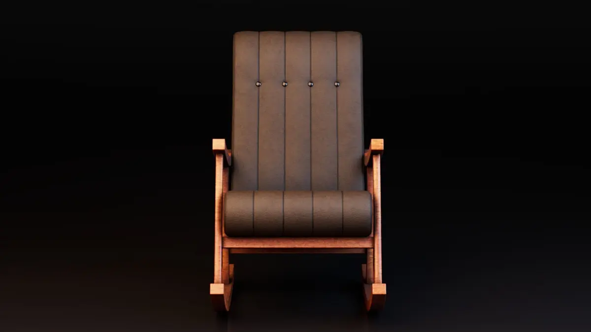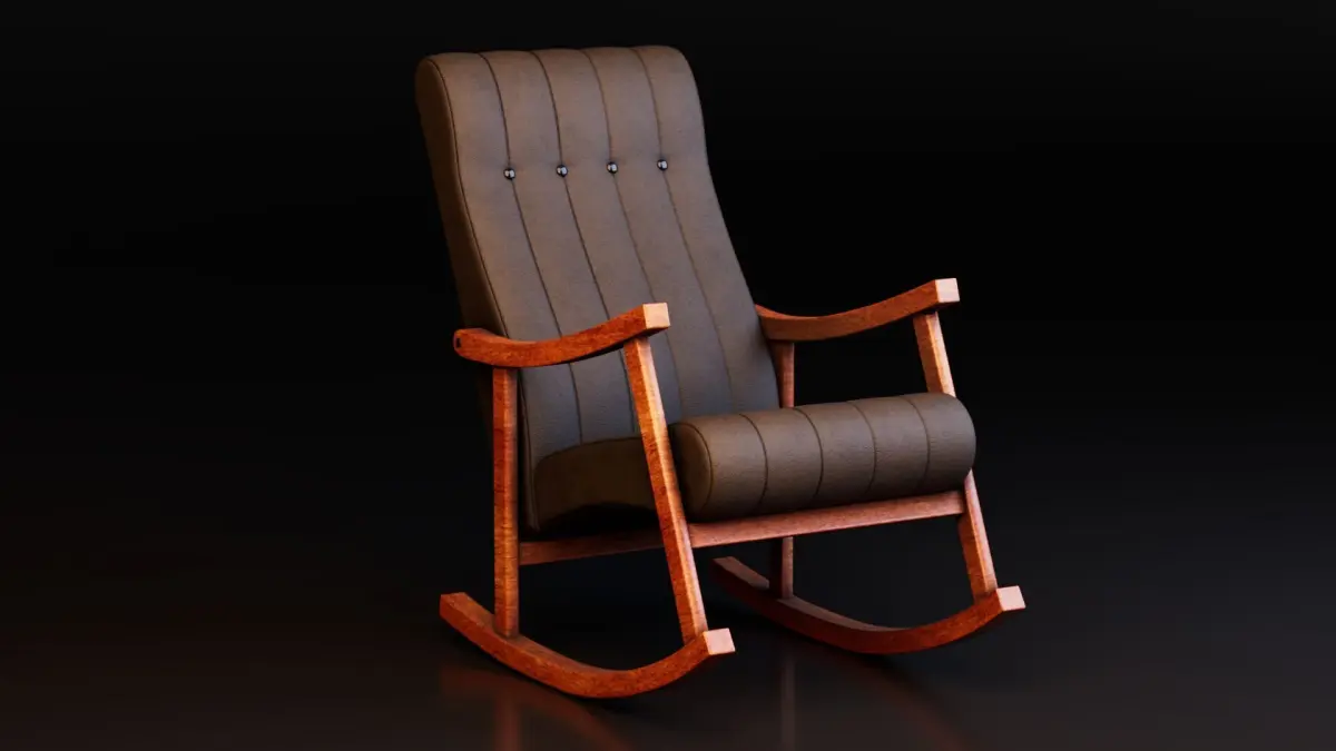 Introducing a beautifully crafted Rocking Chair 3D Model, designed with a perfect balance of vintage charm and ergonomic comfort. This highly detailed model features a rich wooden frame with elegant curvature, combined with a padded leather cushion that brings a luxurious yet homely feel to any 3D interior scene. The seat and backrest showcase vertical stitch lines with button tufting details, enhancing the realism and depth of the upholstery.
