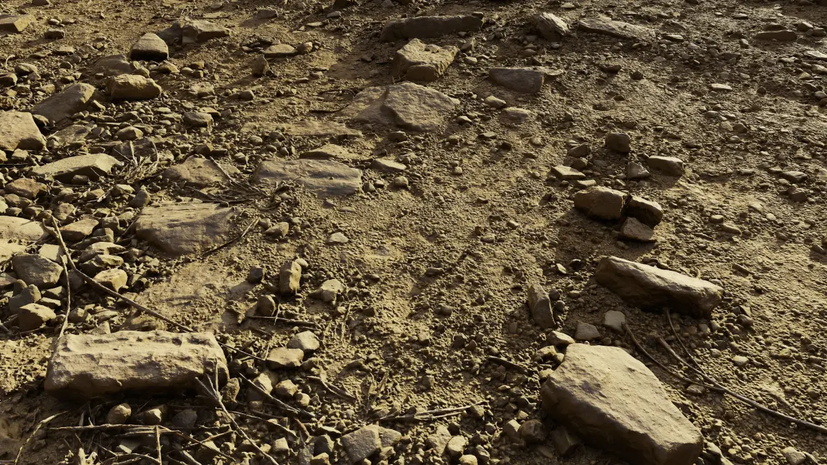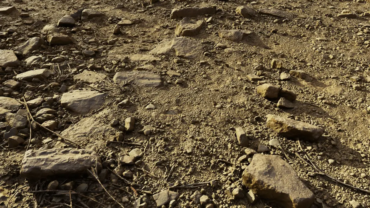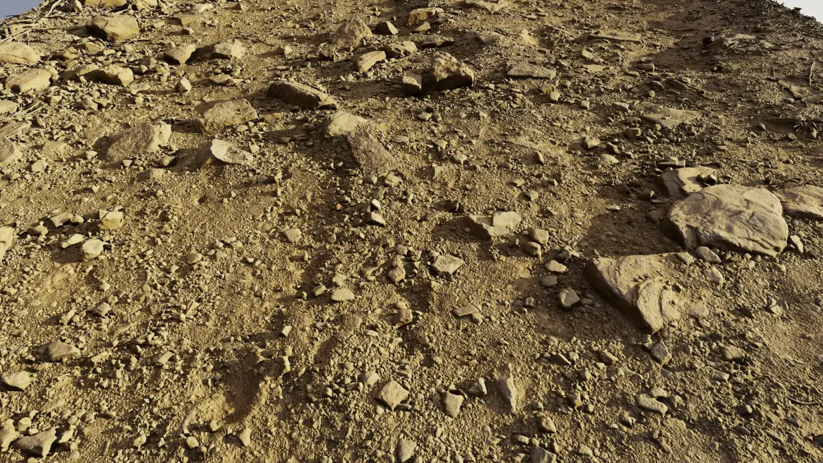 Hi res photoscanned soil/ground area covered with rocks and gravel. The photoscan was made with several hundreds of pics to get the fine details. Model comes with 16384X16384 hires Diffuse, normal, occlusion, detail_normal, albedo maps. Vertices: 2504938 Polygons:4999999 . Ideal for baking textures from or for use as high detail mesh. obj format