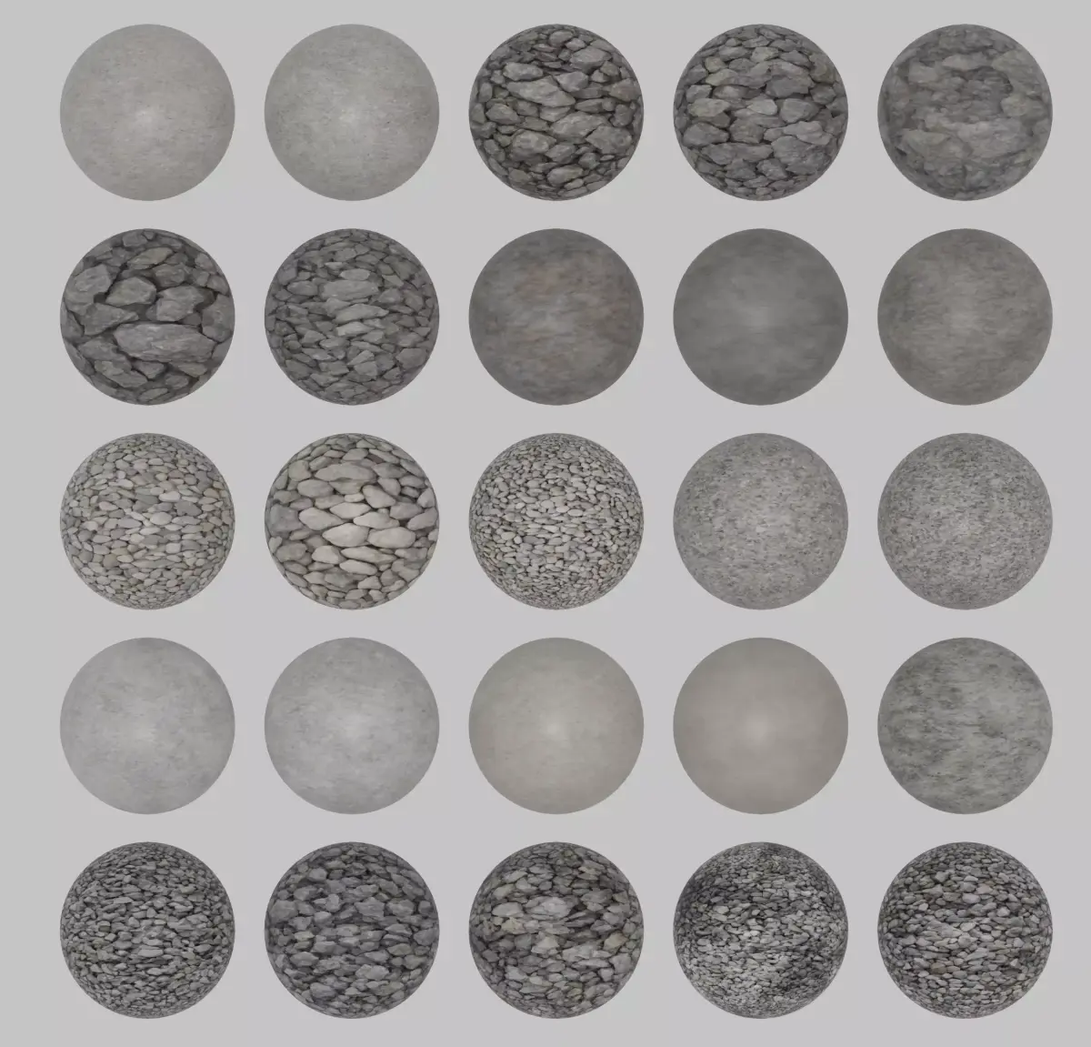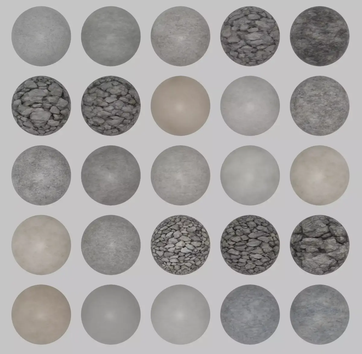 Each Texture includes: Albedo, Normal Map, Displacement, Roughness, AO