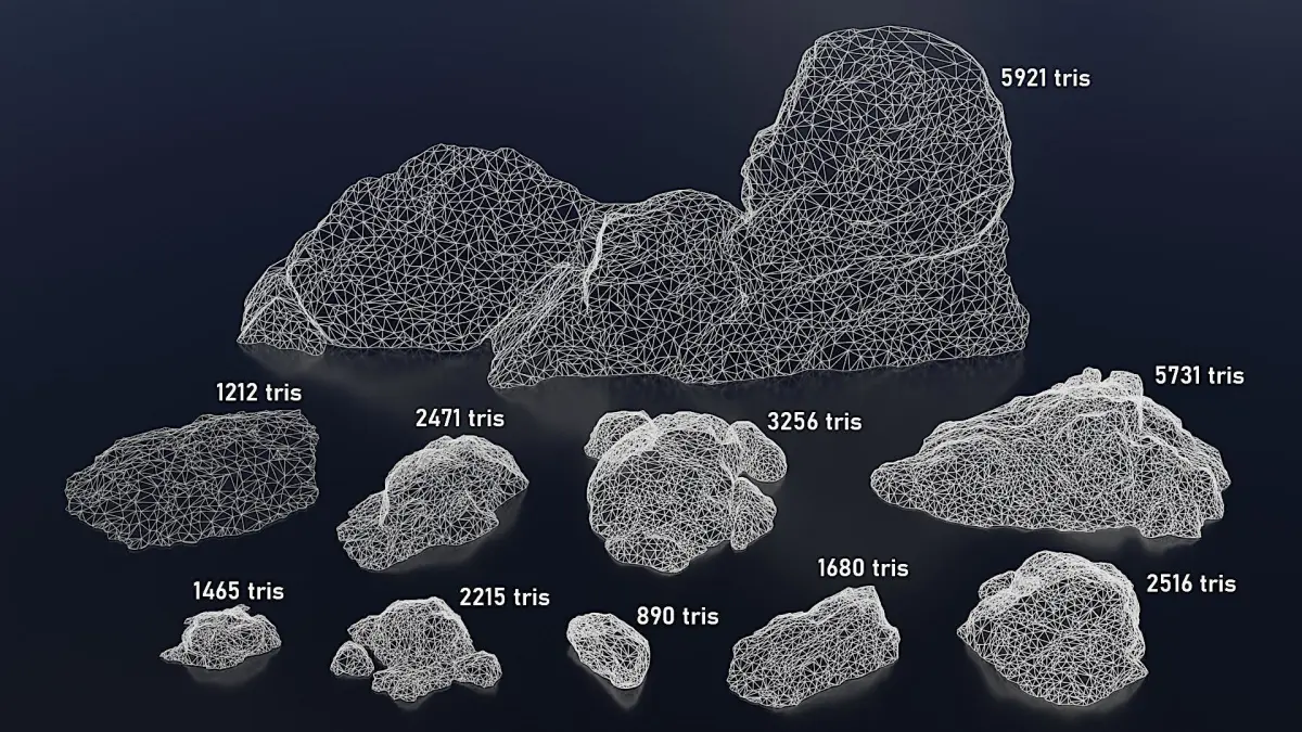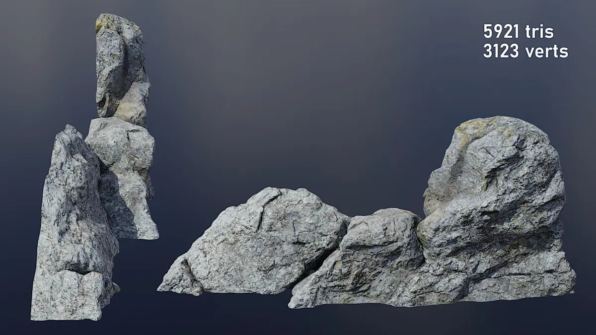-All textures are 2048 x 2048.jpg files with one 4096 x 4096 texture set for the largest rock