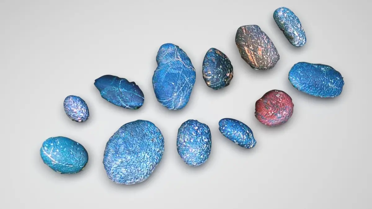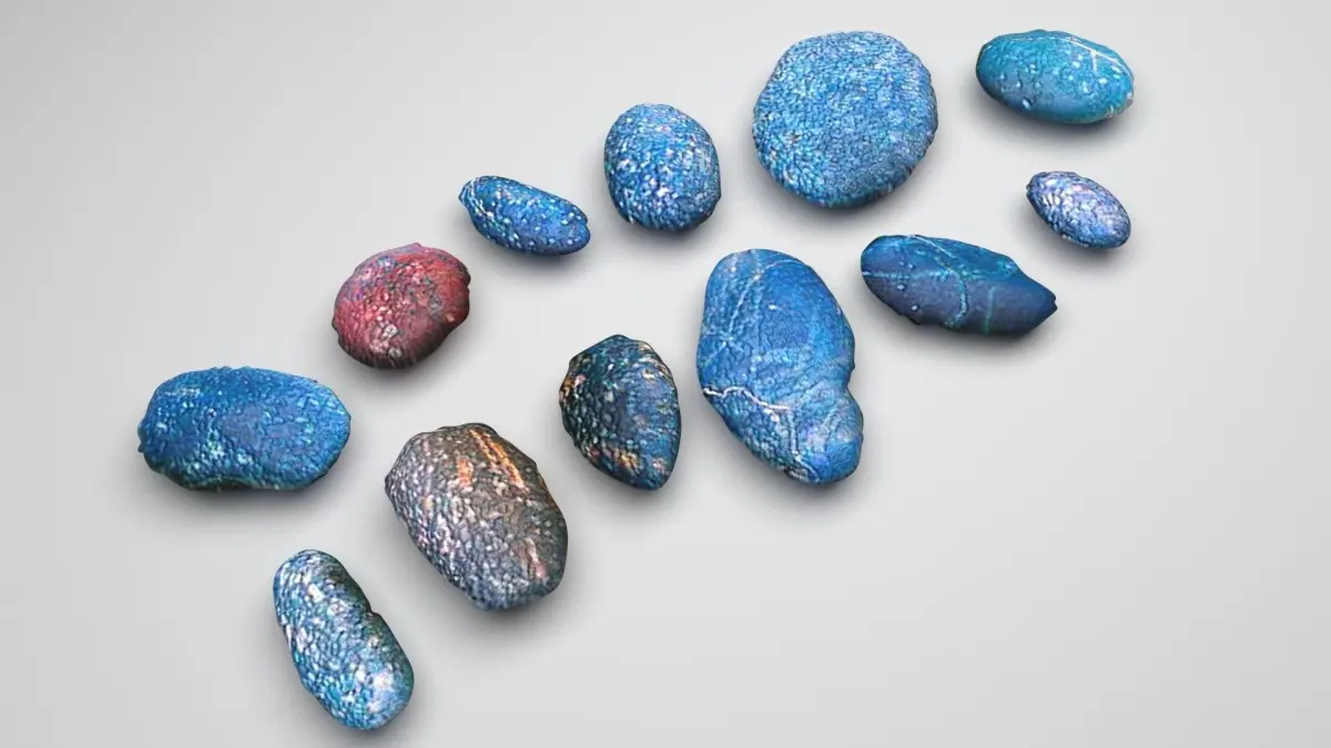 12 different pebbles models with textures, copied from real sea pebble. Separate texture set for each model.